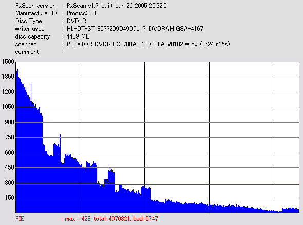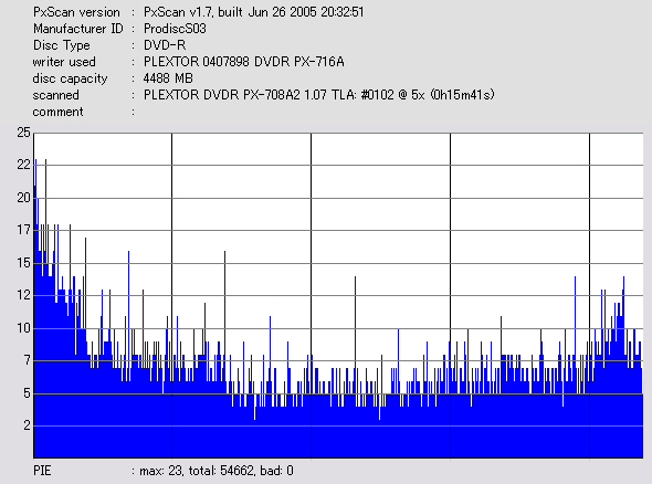 PXscan + PLEXTOR PX-708A2の8ECC Sum 5x CAV計測 |