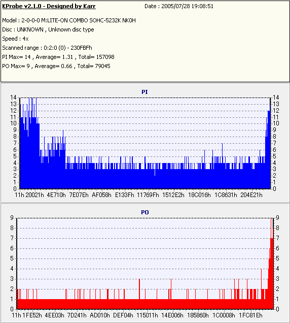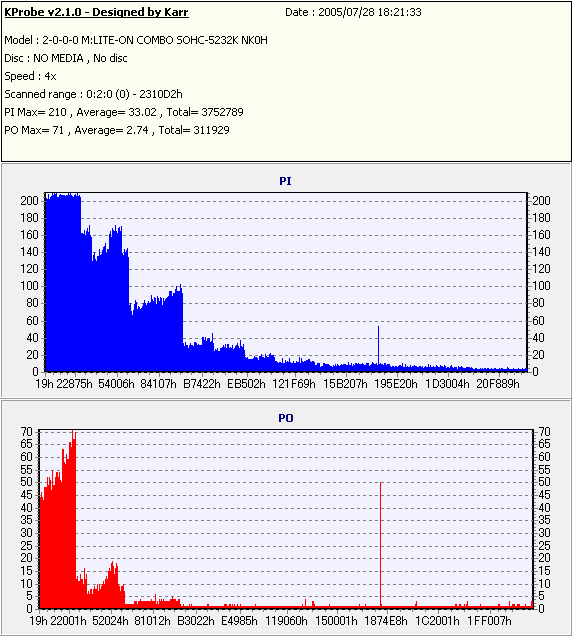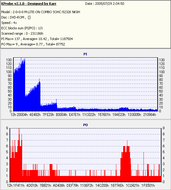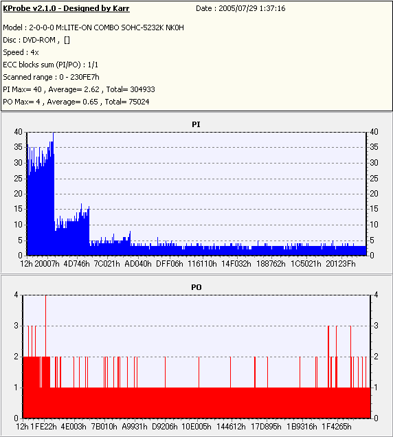 Kprobe + LITE-ON SOHC-5232Kでの1/1ECC Sum 4x CAV計測 |