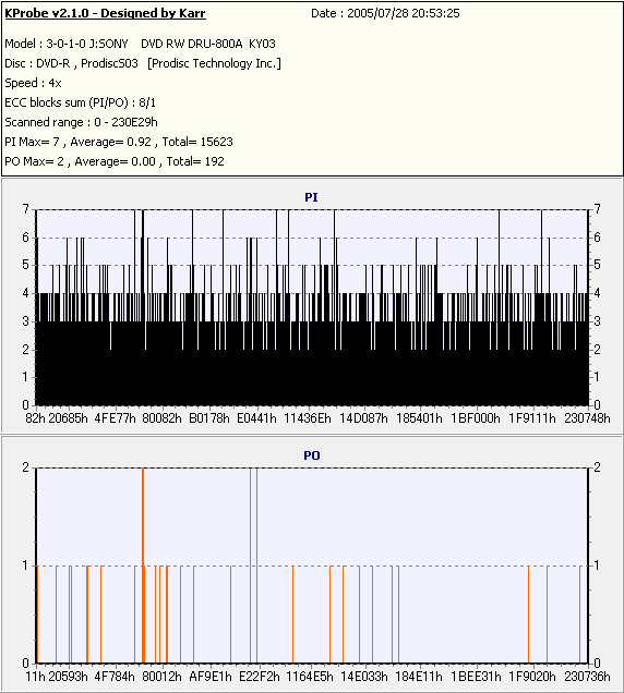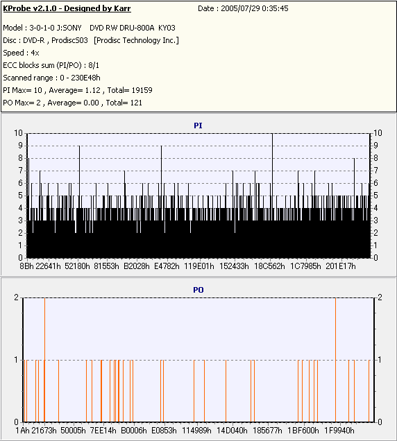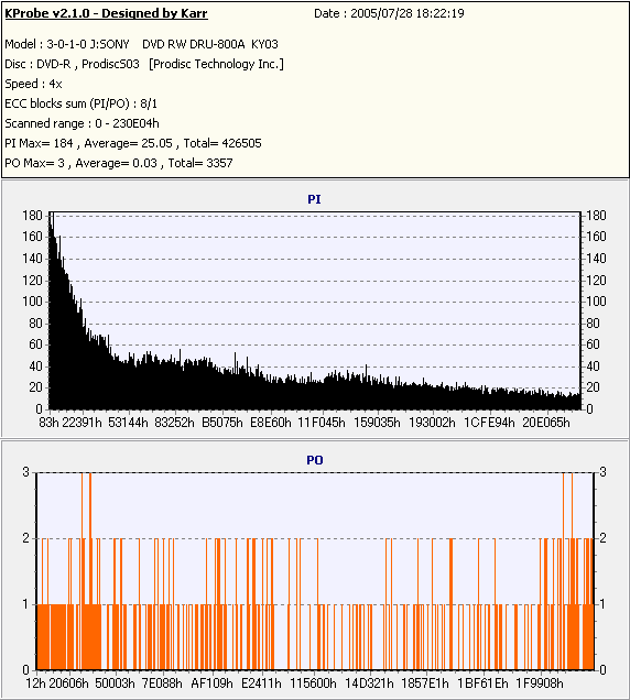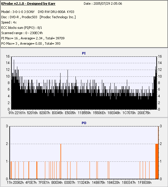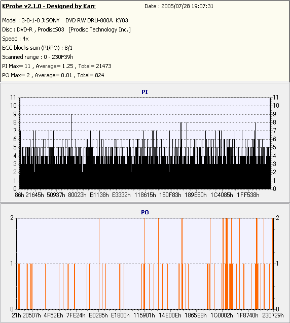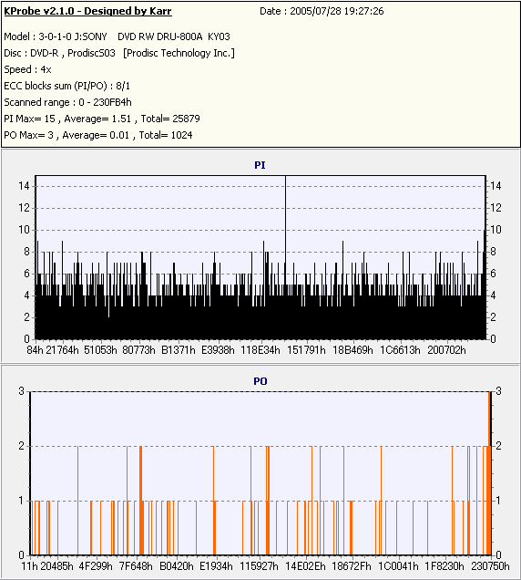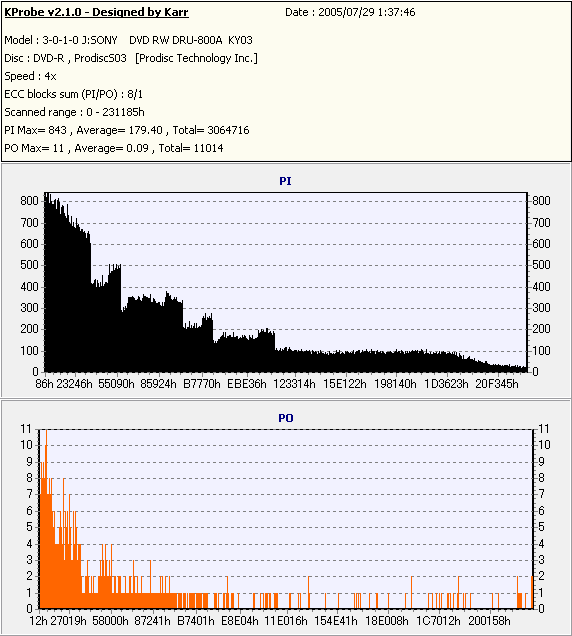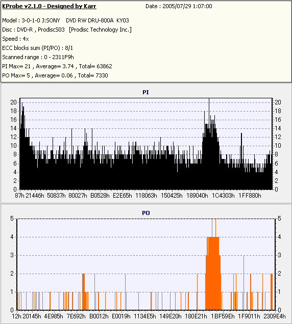 Kprobe + SONY DRU-800Aでの8/1ECC Sum 4x CLV計測 |