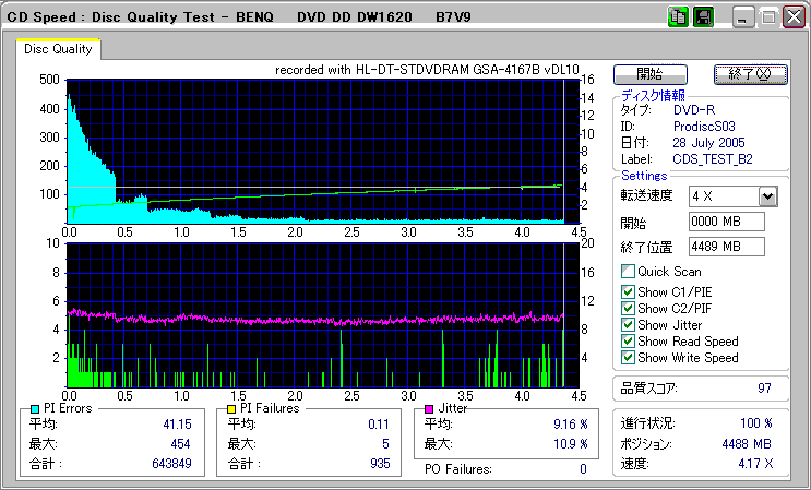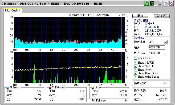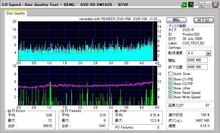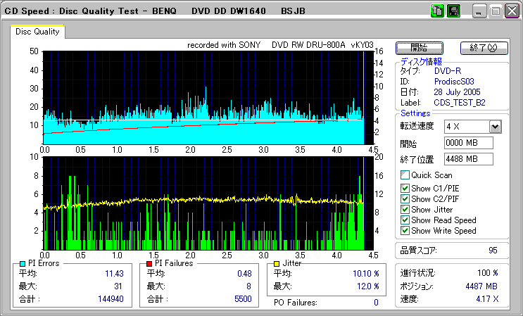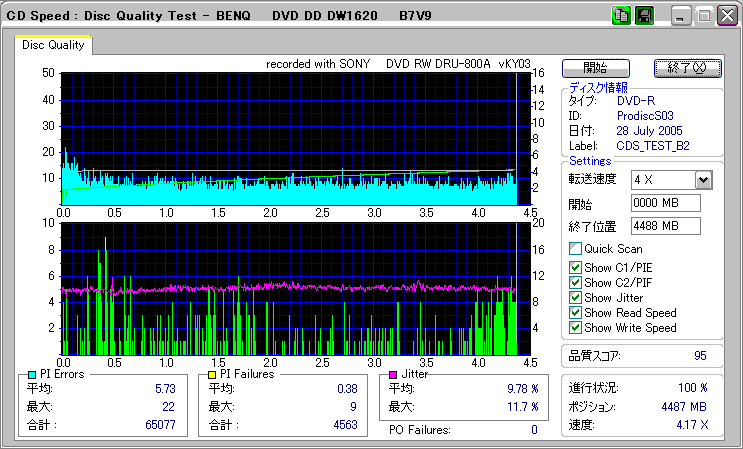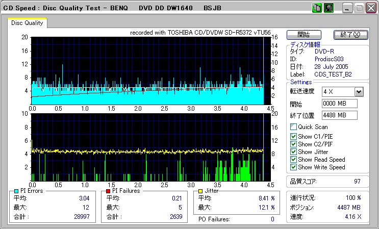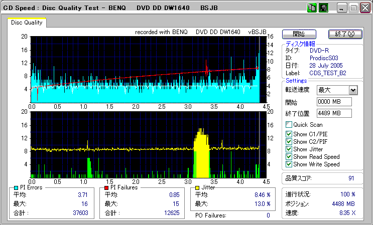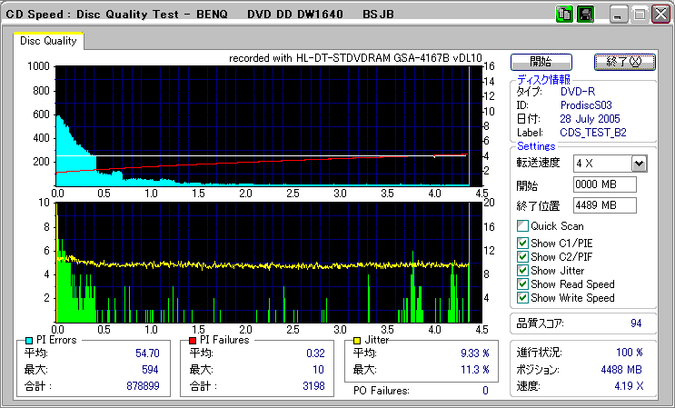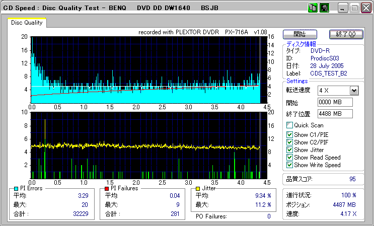 CDSpeed + BenQ DW1640の品質テスト(4x CAV PIE/PIF/Jitter/POF) |