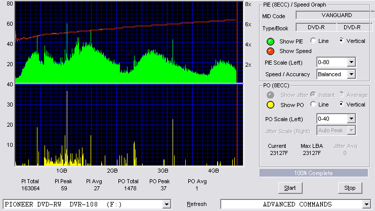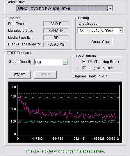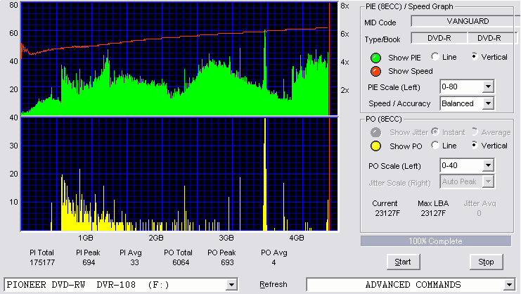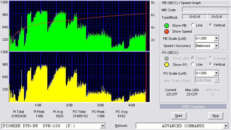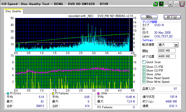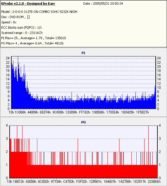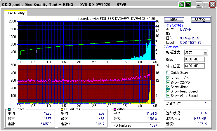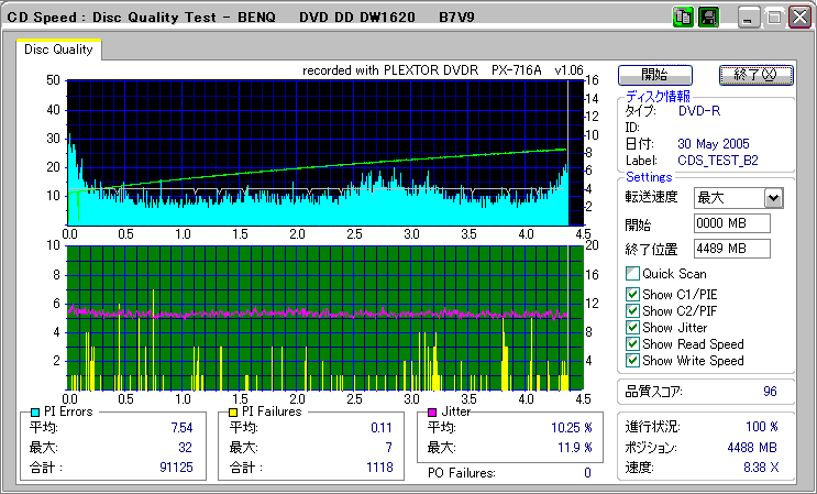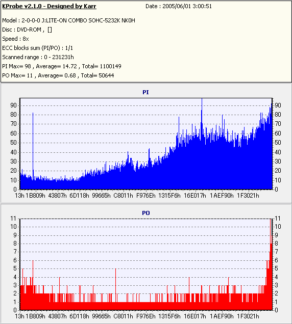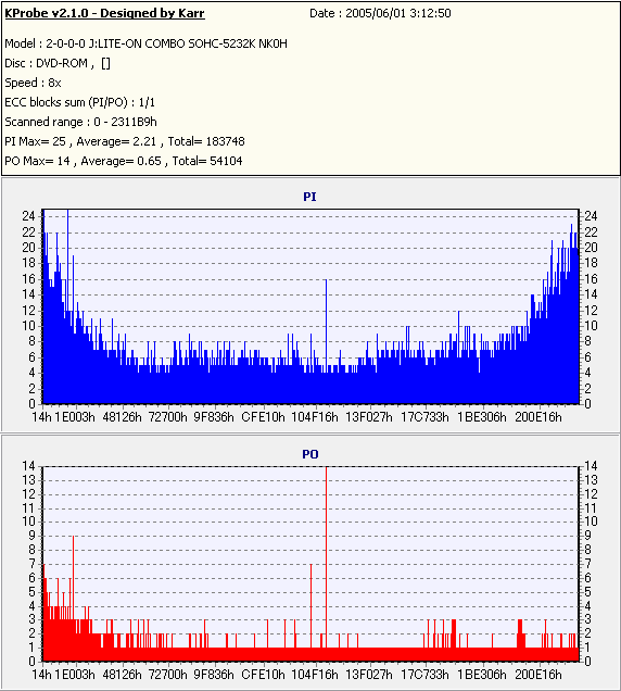 ドライブによってかなり相性が激しく、SD-R5372やDVR-108等では使い物になりそうにない。しかし、それ以外のドライブでは予想外に印象の良いグラフ。