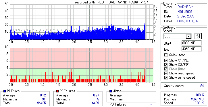 焼き直後の読み出し品質 | ||||||
