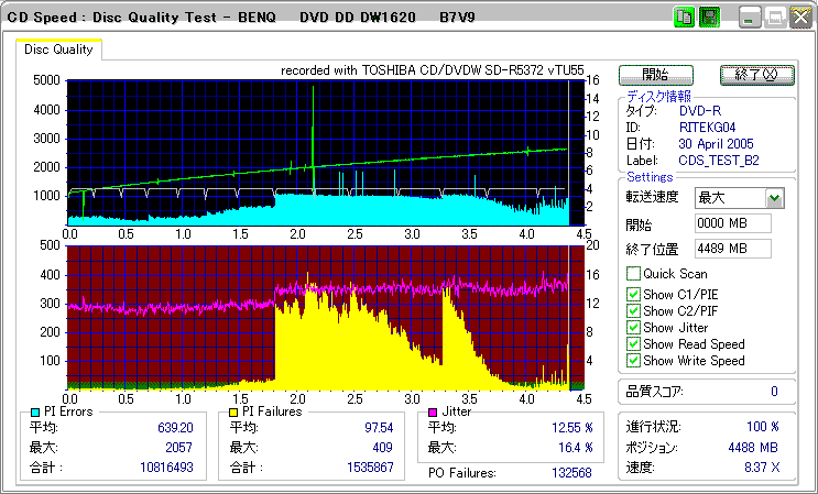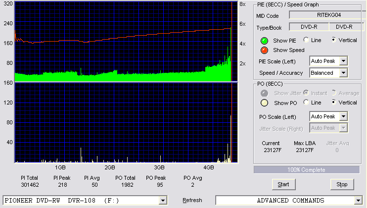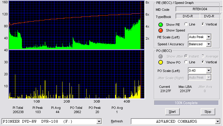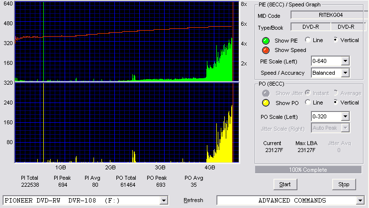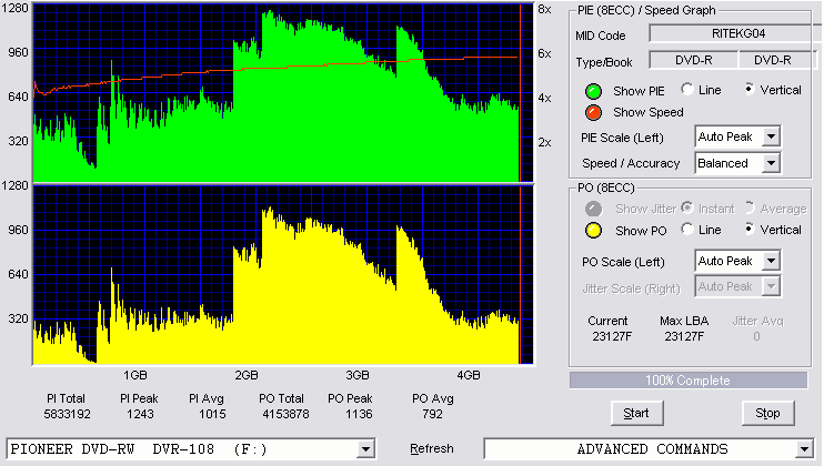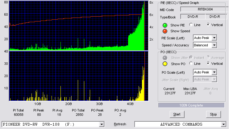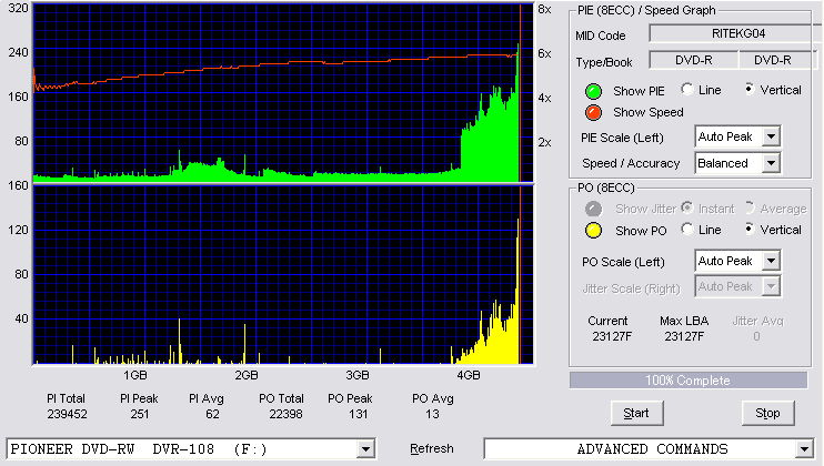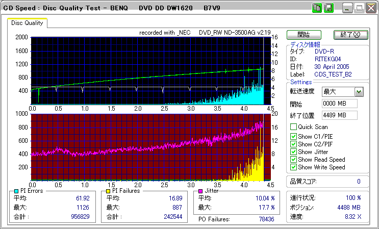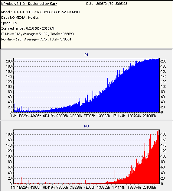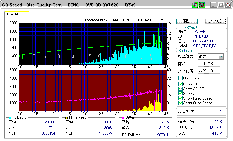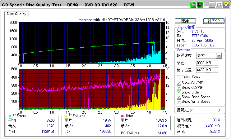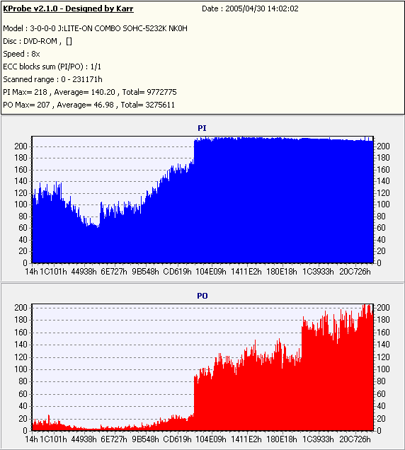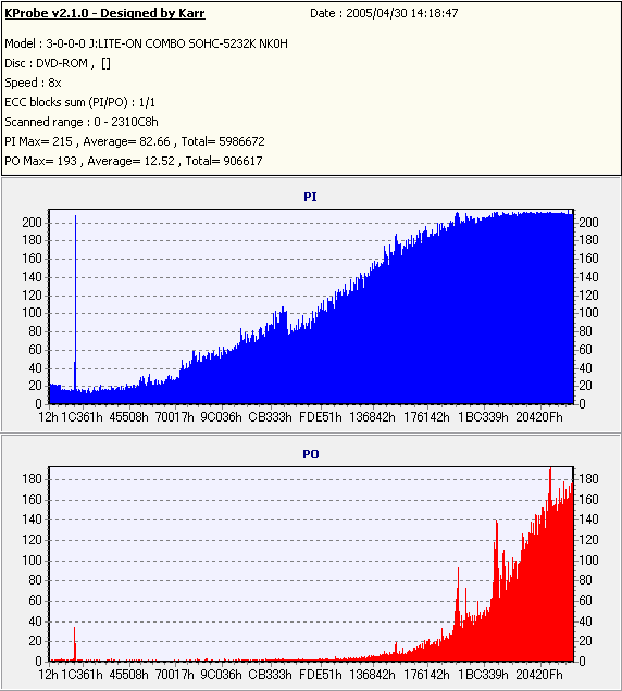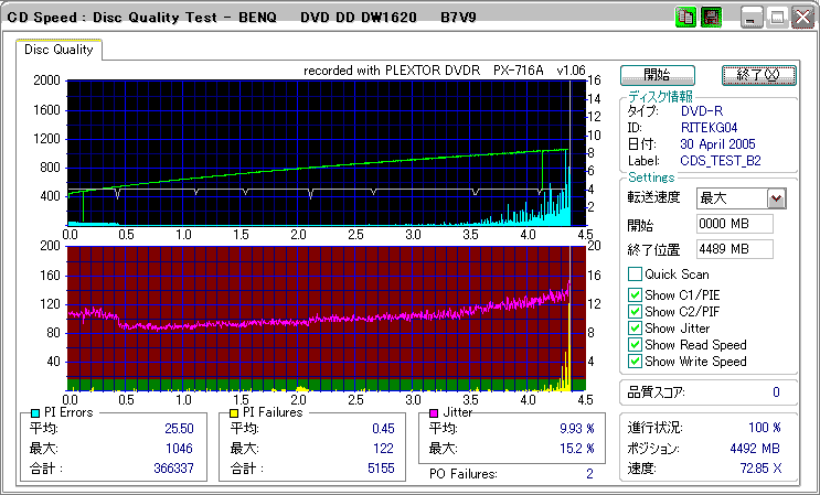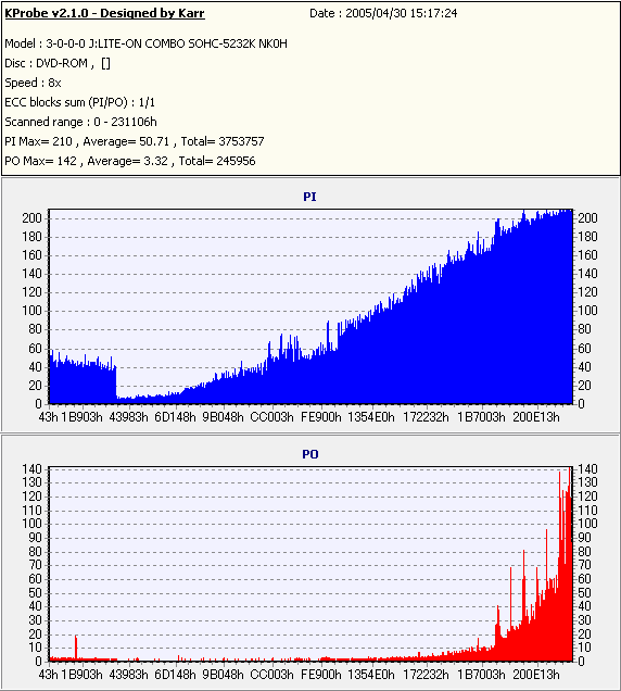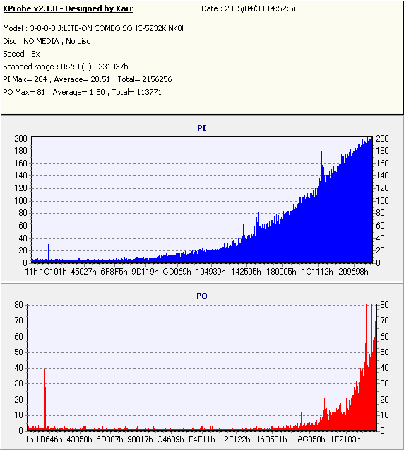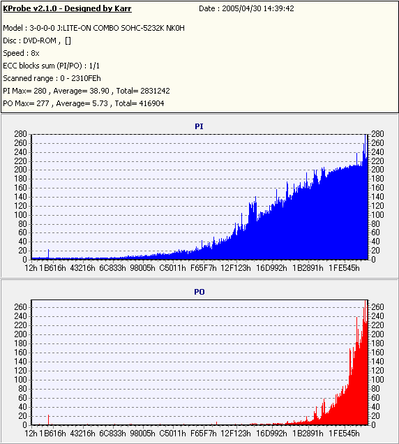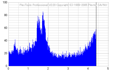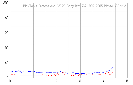 PX-716Aでの計測では低エラーだが、外周のJitter値が異様に高く、その他のドライブではかなり悲惨な事に。