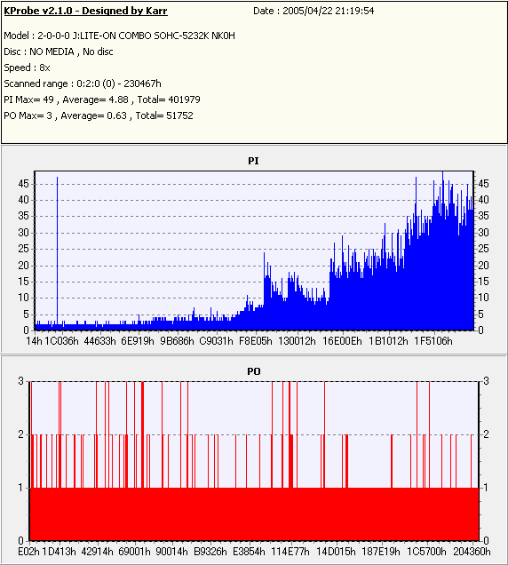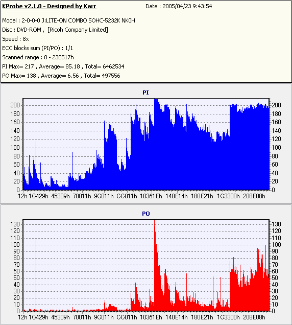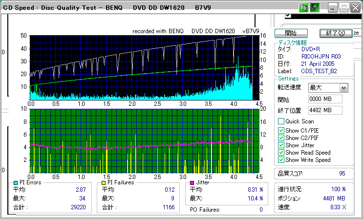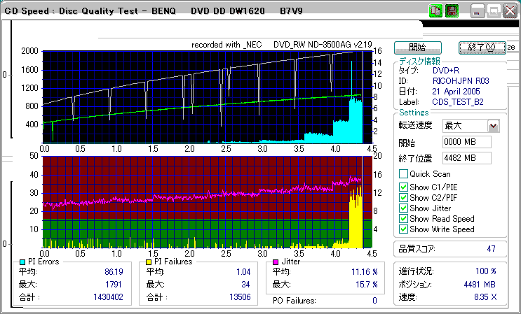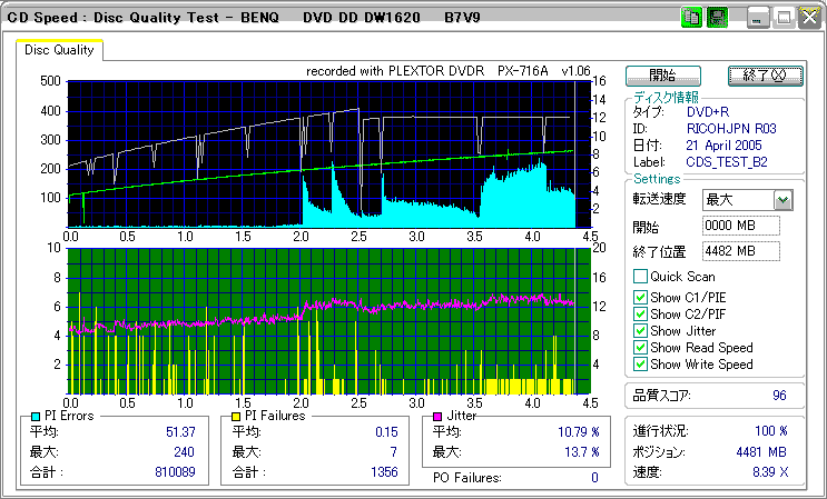 DW1620Rでは16倍メディアとしてはトップクラスの焼け具合だが、その他のドライブではかなりマズいことに。