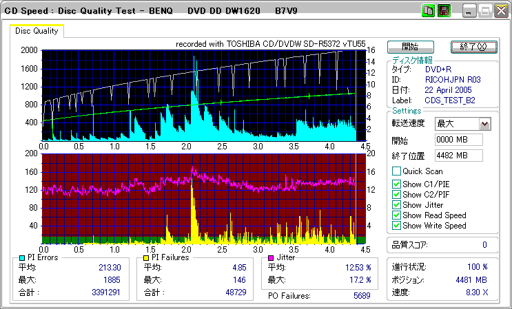 余談だが、SD-R5372がこのメディアで初めて最後まで減速せずに16倍速を出した。 |