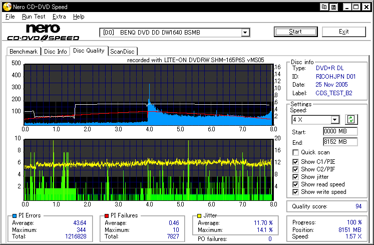 CDSpeed with BenQ DW1640_Disc Quality Test -DW1640でのディスク品質チェック- |