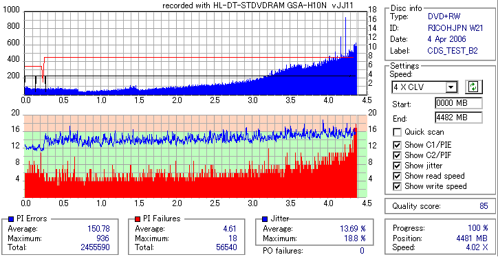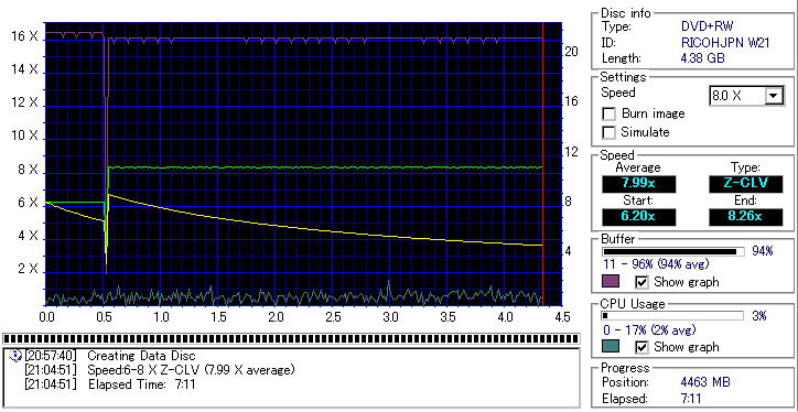 日本で手に入る唯一の8x高速対応DVD+RWなんですが、品質的にはやや微妙……