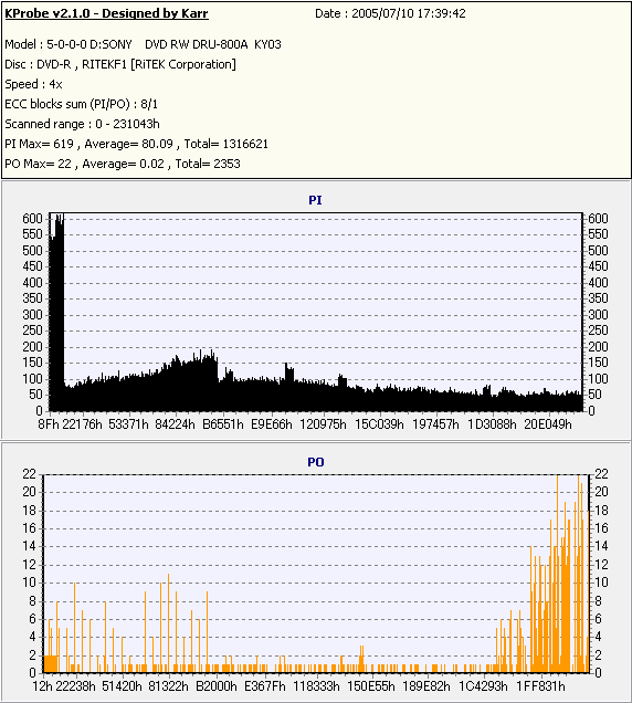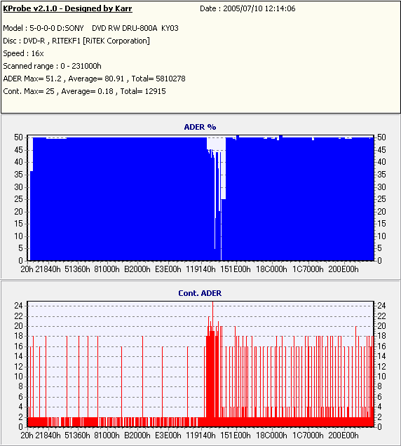 Kprobe + SONY DRU-800Aでの8/1ECC Sum 4x CLV計測 |