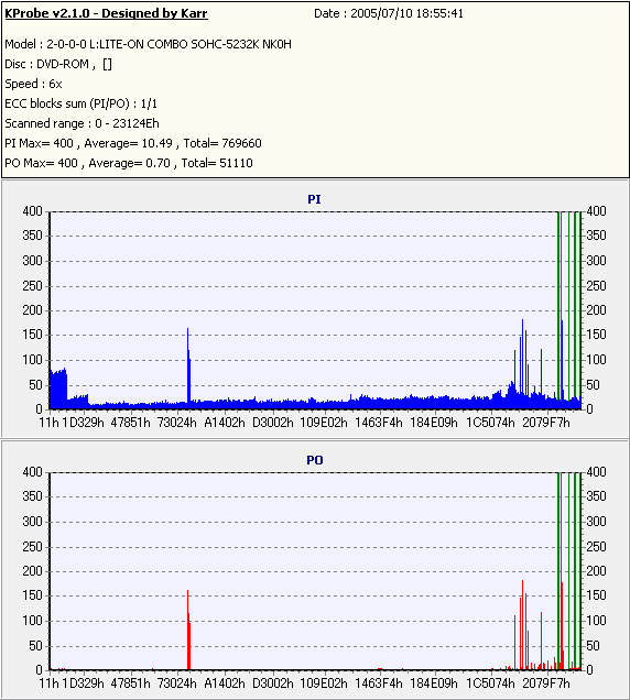 Kprobe + LITE-ON SOHC-5232Kでの1/1ECC Sum 6x CAV計測 |
