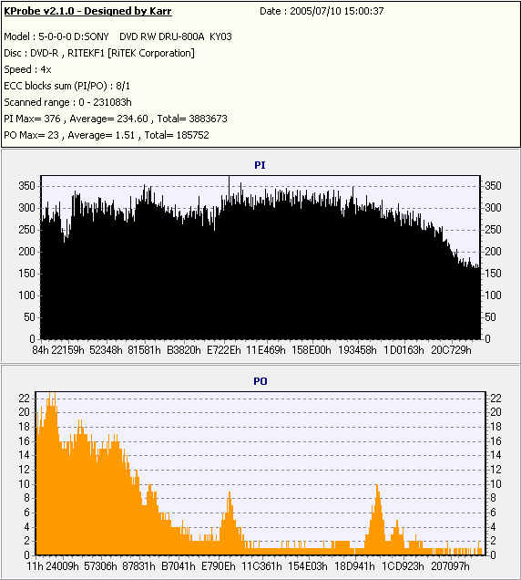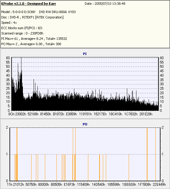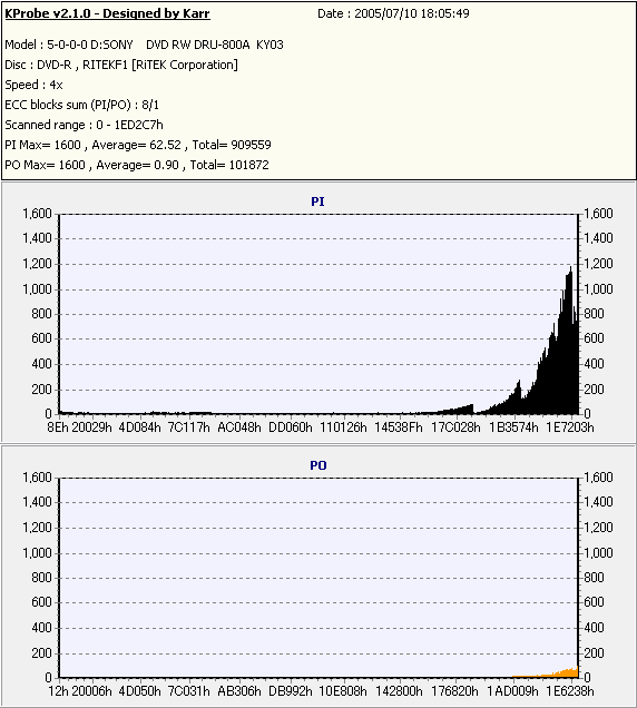 DVDInfoPro + Pioneer DVR-108のPI/PO Test(PIE/POE) |