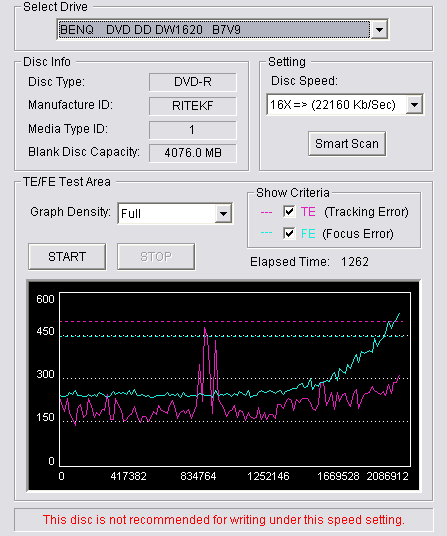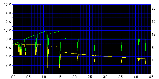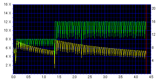 計測結果の方はいまいちパッとしないスコアではありますが、どうもファームの対応が原因じゃないかって感じがします。減速しまくってはいますが焼きムラは全然出てませんし、NECやpioneerのドライブで本格的にサポートされれば、高速でも結構使えるんじゃないかと。