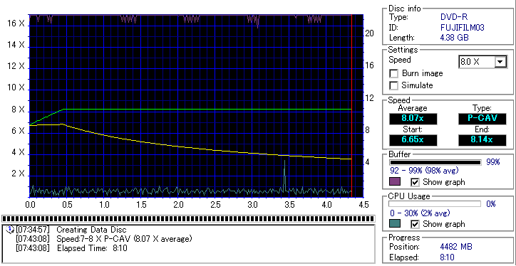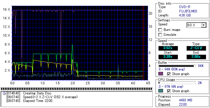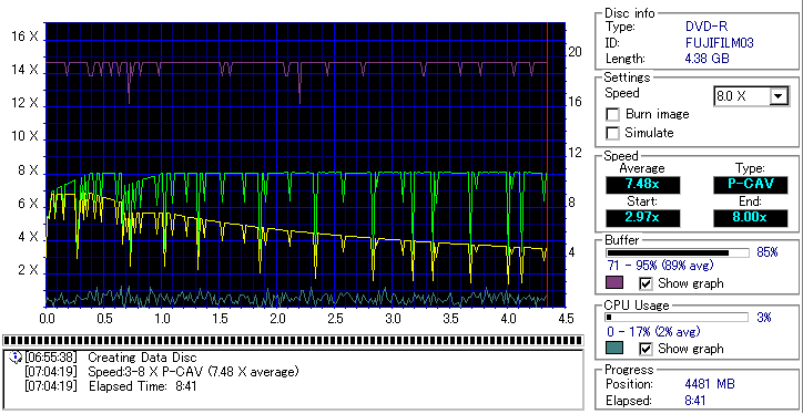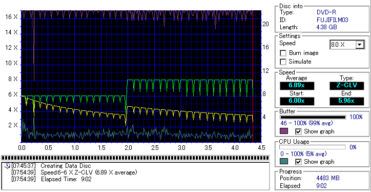 CDSpeed "Create data disc" -データディスク作成による速度グラフ- |