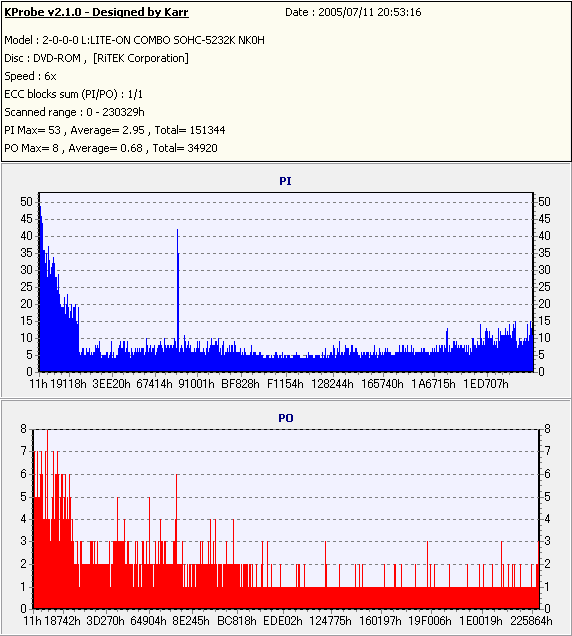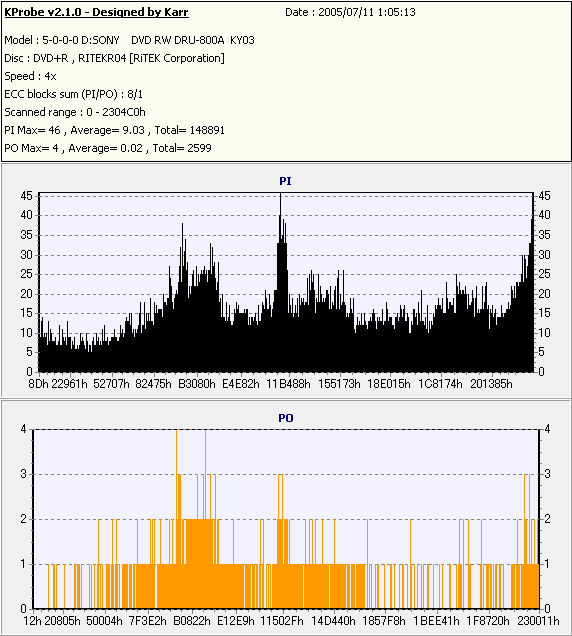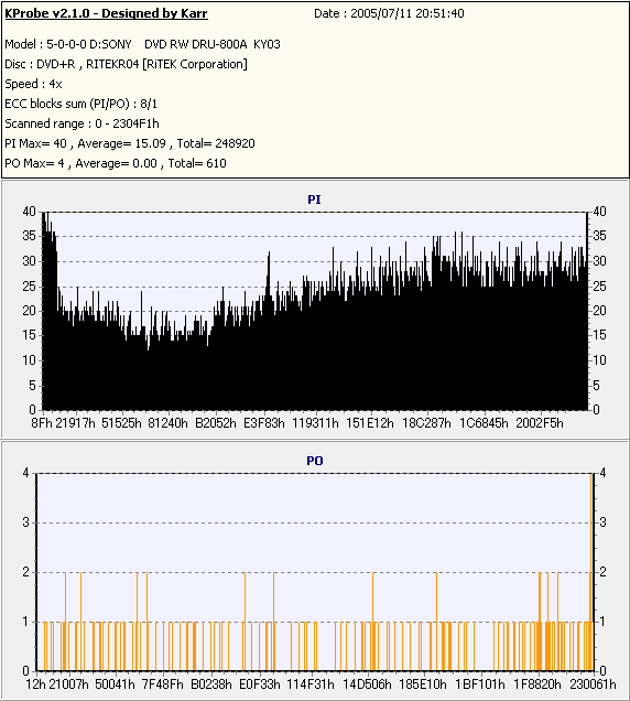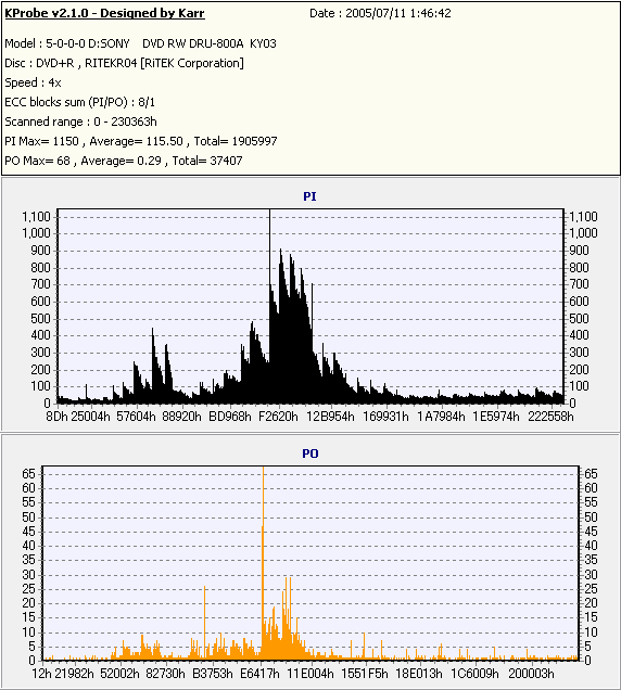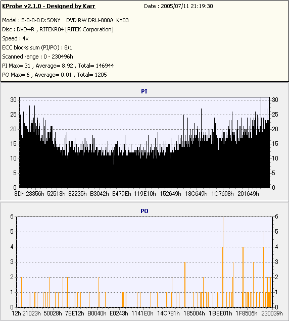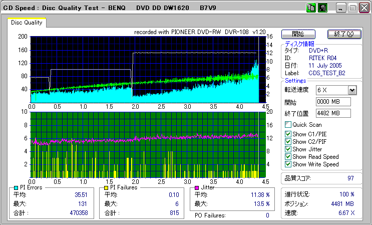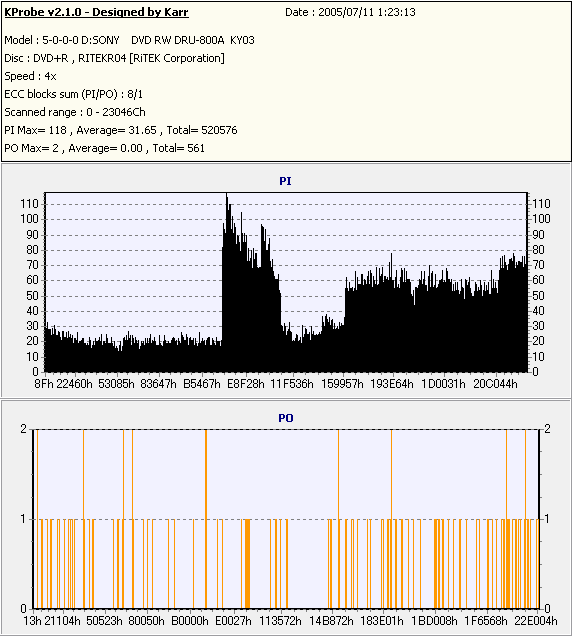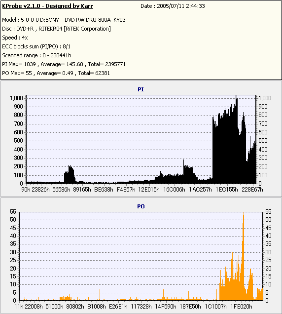 DVDInfoPro + Pioneer DVR-108のPI/PO Test(PIE/POE)