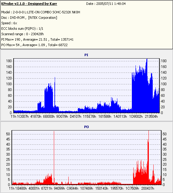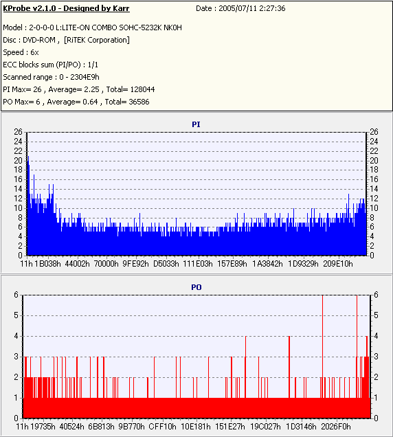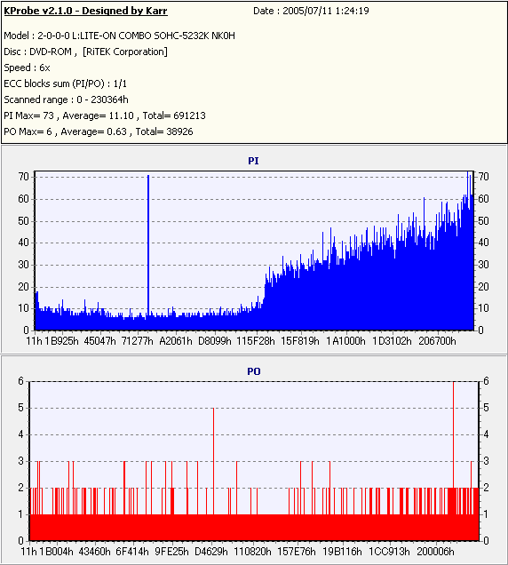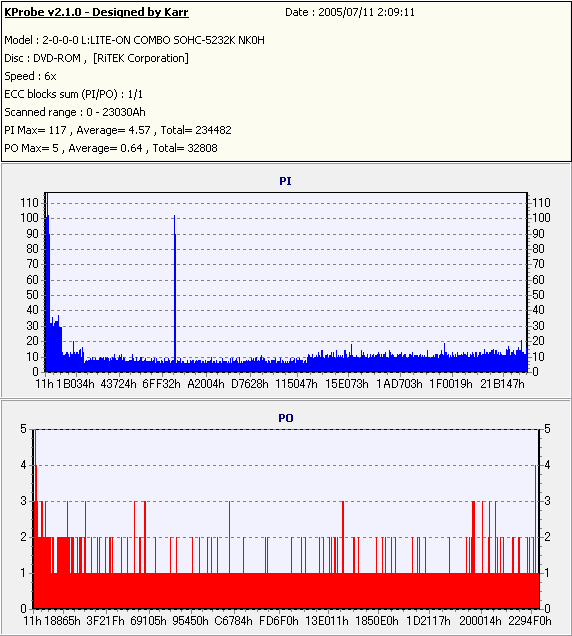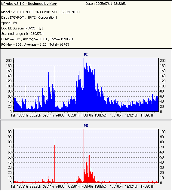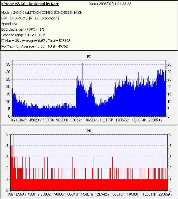 Kprobe + LITE-ON SOHC-5232Kでの1/1ECC Sum 6x CAV計測