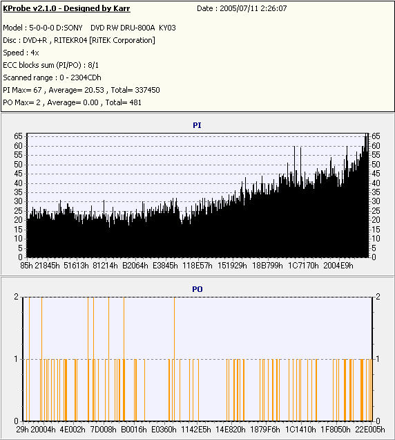 PlexTools Professional + PLEXTOR PX-716AのPI/PO 8ECC Sum Test(速度2 クリックで詳細表示)