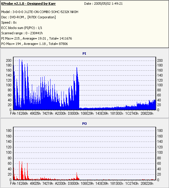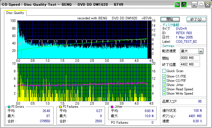 どうも各ドライブのファームがまともに対応していない感じ。RICOHの色素のつもりで焼いてるんじゃないだろうか。