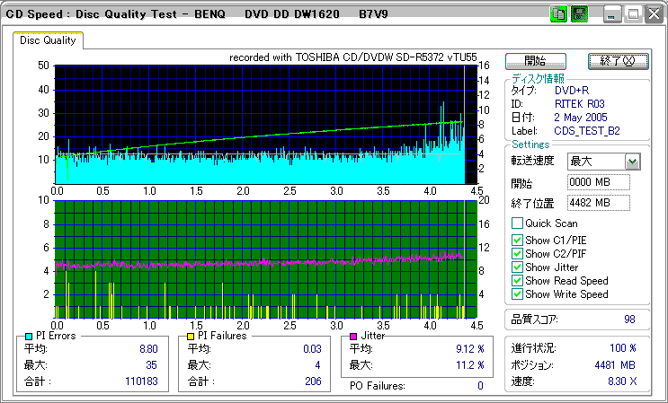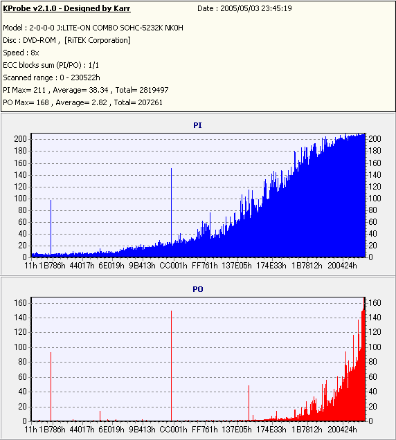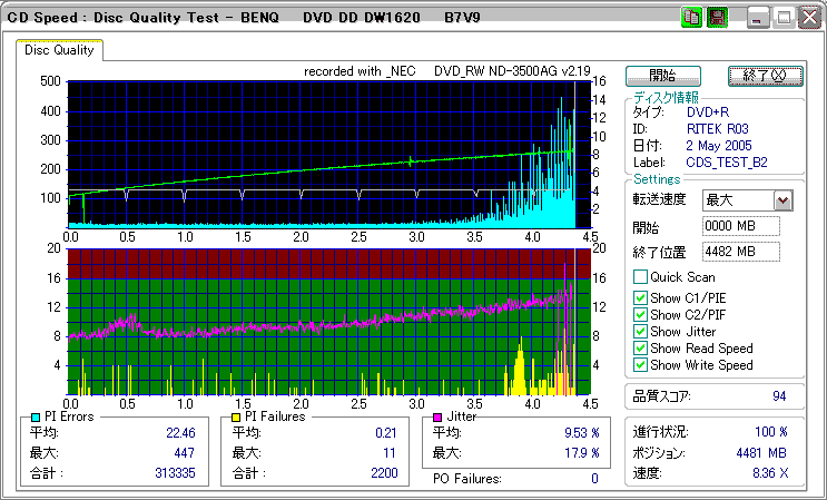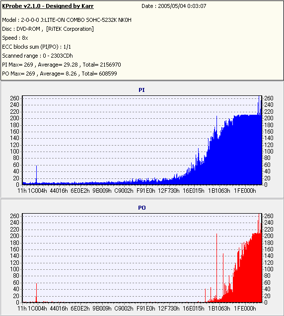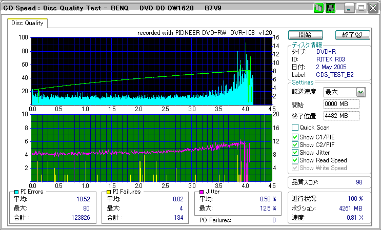 8倍焼きが散々な結果だったため、低倍で焼いてみたのだが、どうもドライブの読みの強さに評価がかなり影響される感じ。つまり、読みの強いドライブなら問題ないが読みの弱いドライブだと全然駄目という極端な結果に。