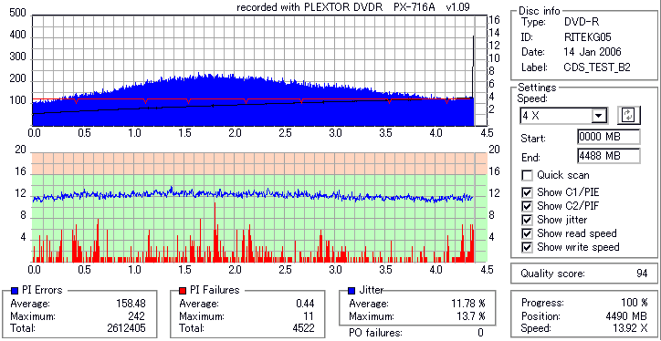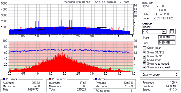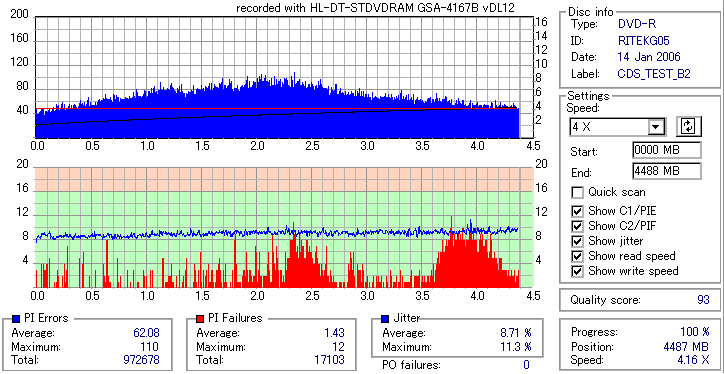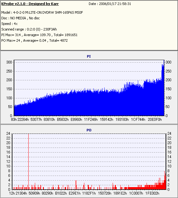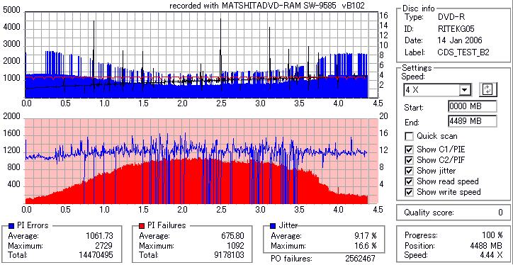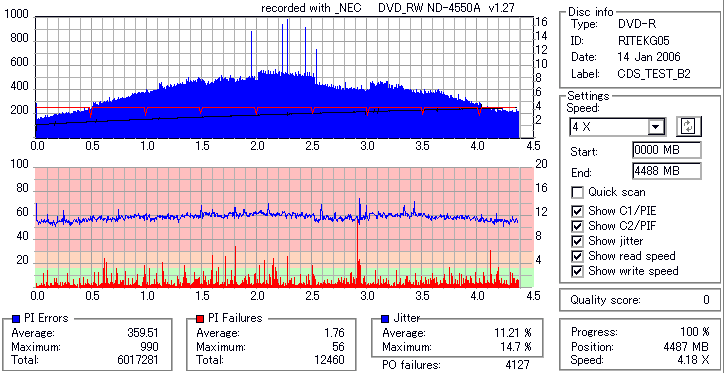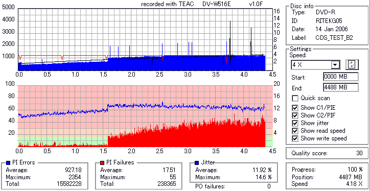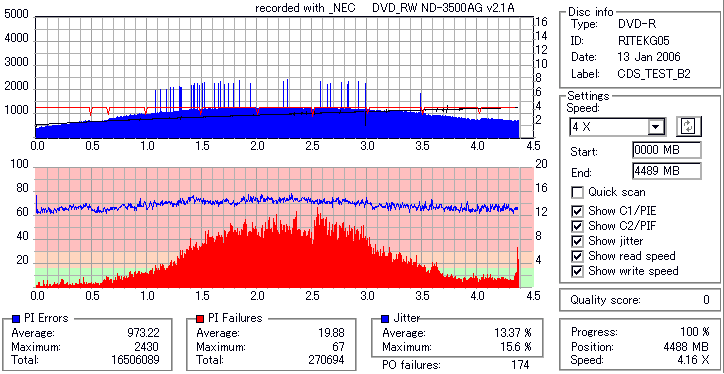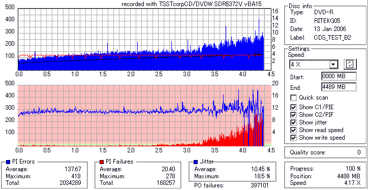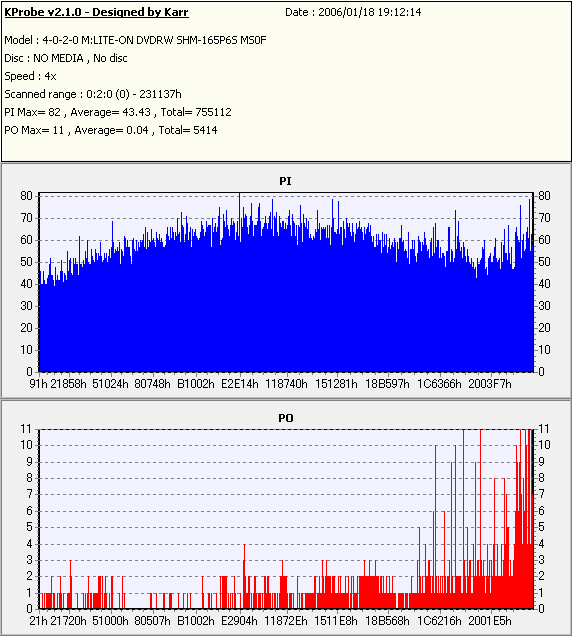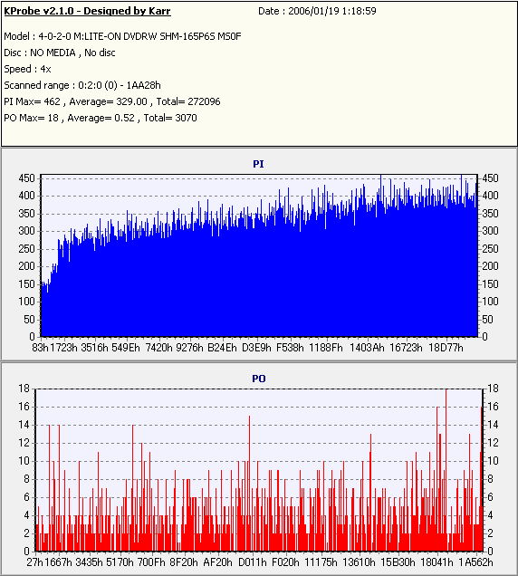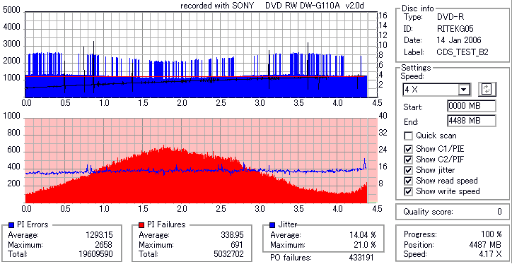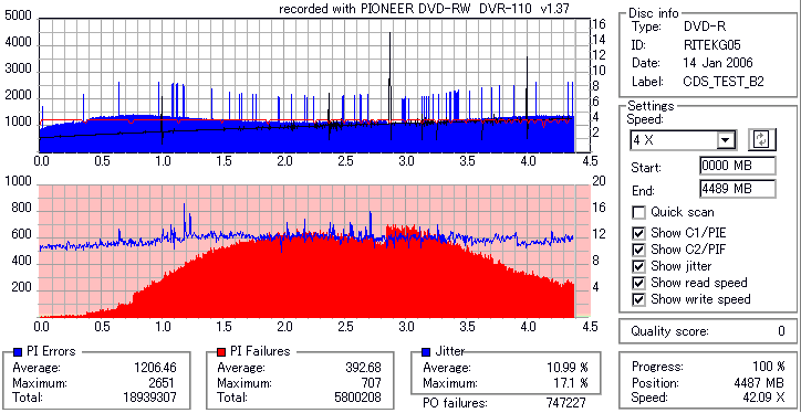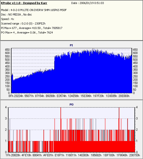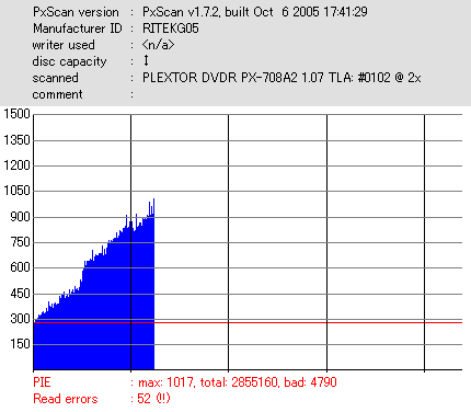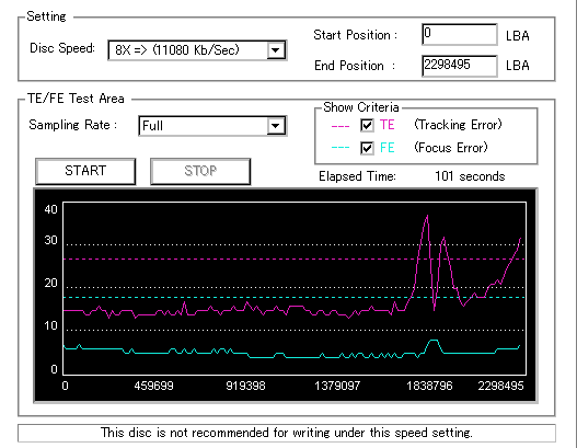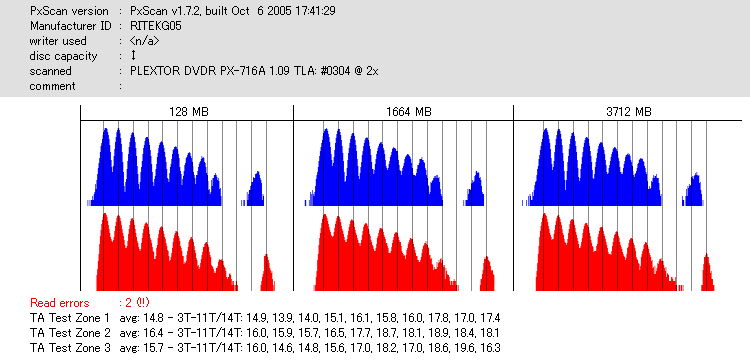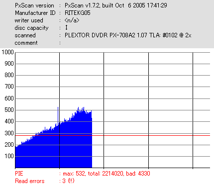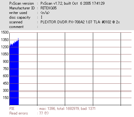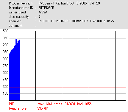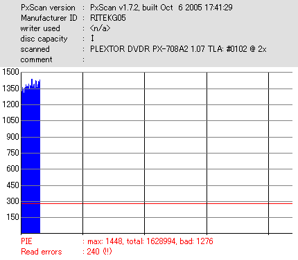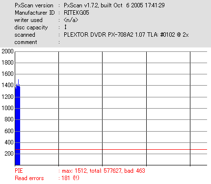 8倍で焼いてみたところほとんどのドライブでまともな結果にならなかったので、一縷の望みを託して4倍焼き。 で、結果。いや、予想はしてましたけどね。本家RiTEKのように、4倍で焼くと神になるっていうのだったらまだ使い道あったんですが。 もう8倍の方でもかなりぶっちゃけてますから、怖いもん無しって事で。こっちでも言っちゃいましょう。 ゴミです。用を成しませんので今すぐ棄てましょう。 (マジごめん販売店さん。当サイトが売り上げにもたらす影響は自惚れながら知ってるつもりだけど、でももう堪えられない) ・・・唯一GSA-4167Bでの結果が若干まともなので、使わずに捨てるのはちょっと…という人はそれで焼き捨て用に使うといいかも。 ただ、絶対にドライブ痛めると思いますんで、できれば止した方が良いと思います。 |