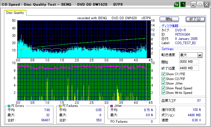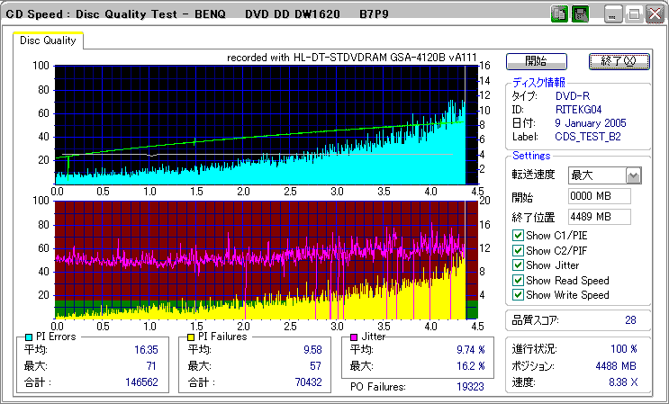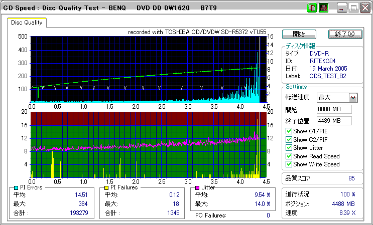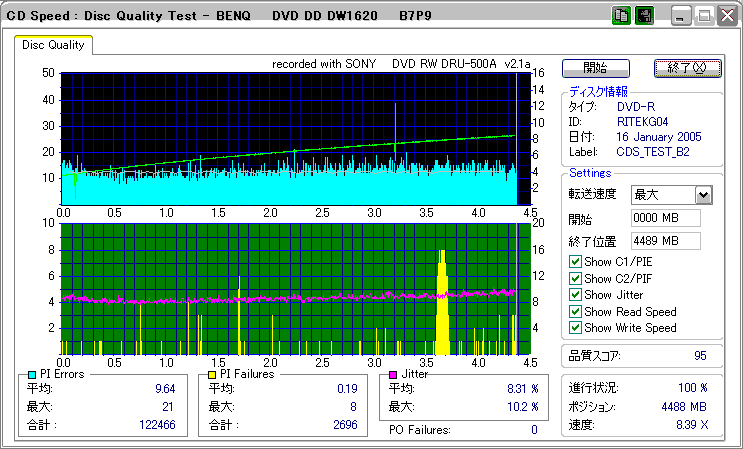 DW1620Rで焼いたものが若干エラー増加してるきらいはありますが、特に深刻な劣化はなさそうです。