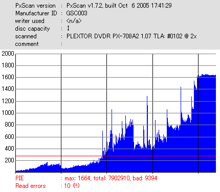 ※参考比較用 OverSpeed機能を用いて普通のGSC003を16x焼き |