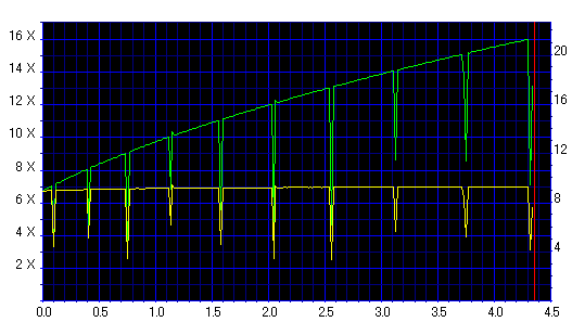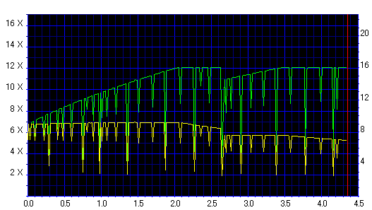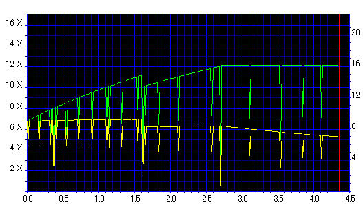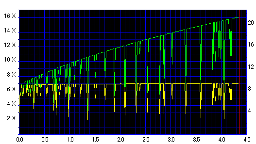 今話題のRoyalShadowに実は16倍速メディアが混入してるんじゃないかとの事で、 当サイトで調べてみた結果、ドライブごとに返すIDが異なるディスクを購入枚数に対しておよそ1割だけ見つけることができました。 以下、16倍速に対応したドライブで焼いてみた結果です。 …正直、まともじゃないです。 |