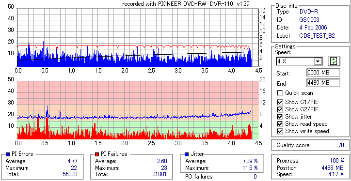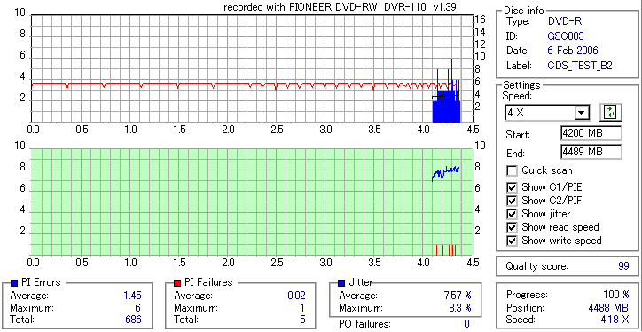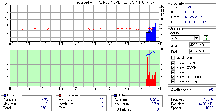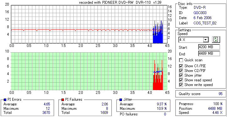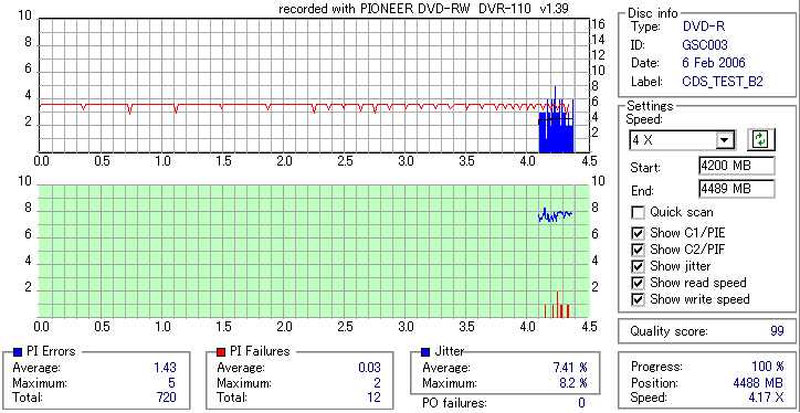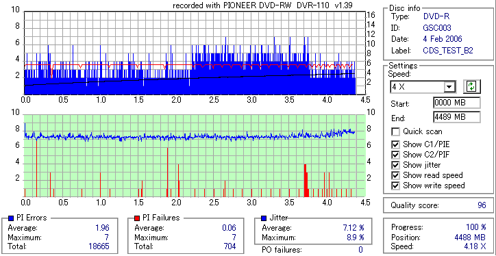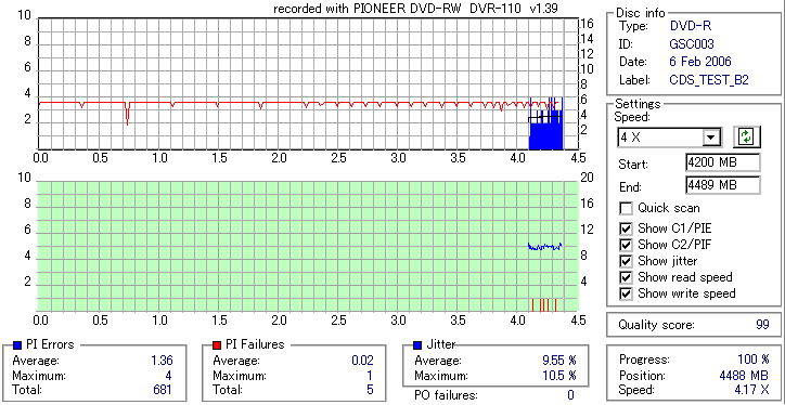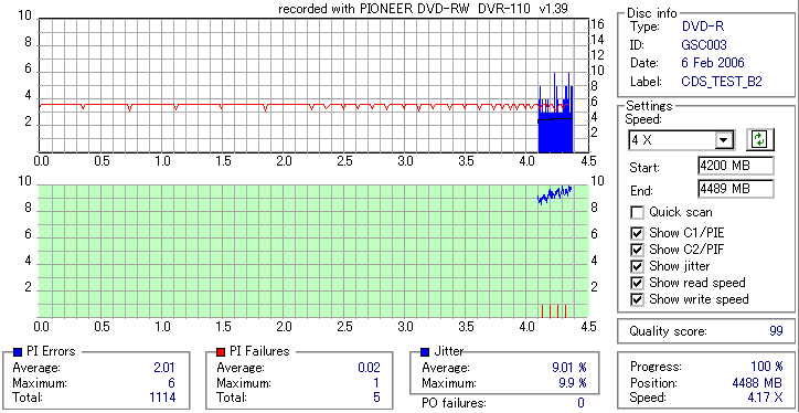 で、もしかしたら記録面の内周刻印が3006のものが諸悪の根源なのかと思い、DVR-110でも焼いてみた結果。