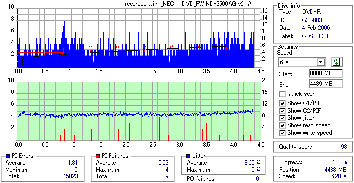 CDSpeed with BenQ DW1640_Disc Quality Test -DW1640でのディスク品質チェック- |