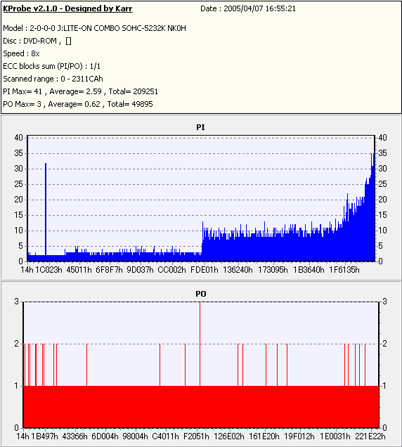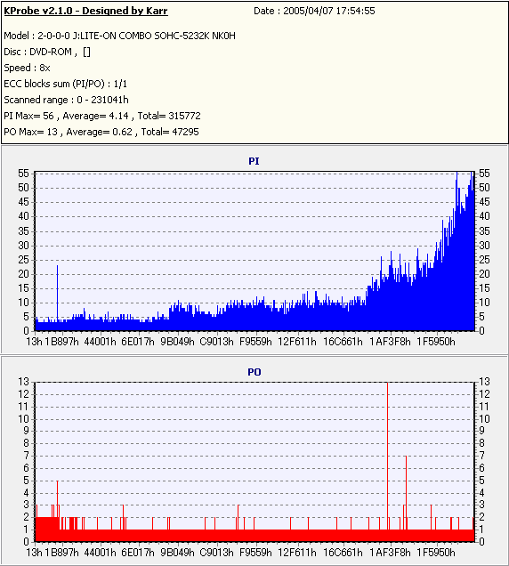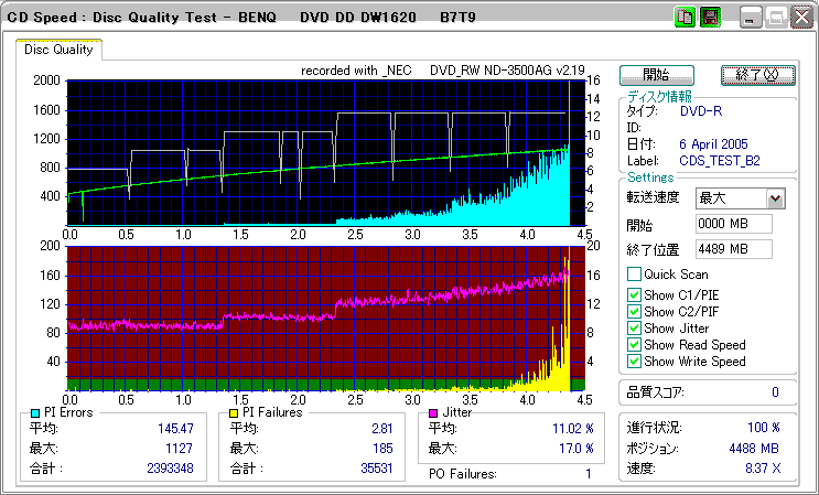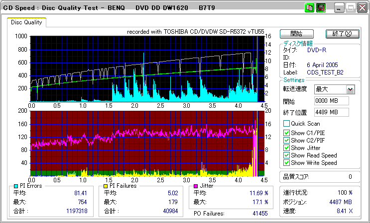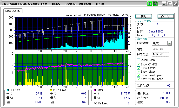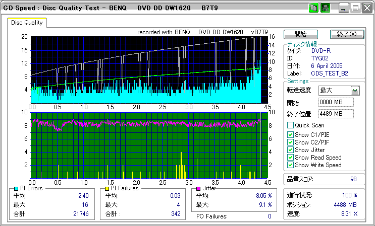 Jitterも低く、特に問題なさそう。実は下手に誘電16倍を買うより8倍に速度違反した方が…