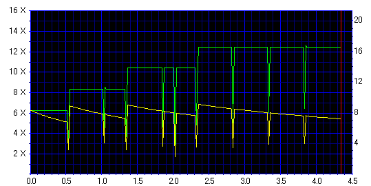 外周に大きめの山がある。最外周は12倍に減速しているが、それでもこんな感じ。やはり速度違反は辛そう。