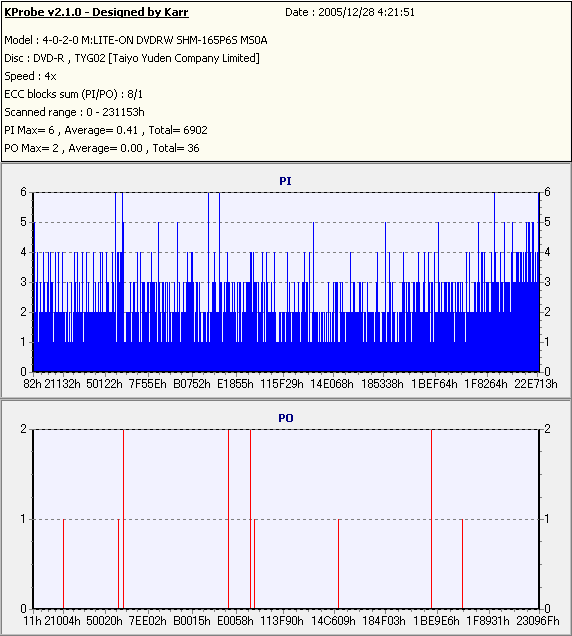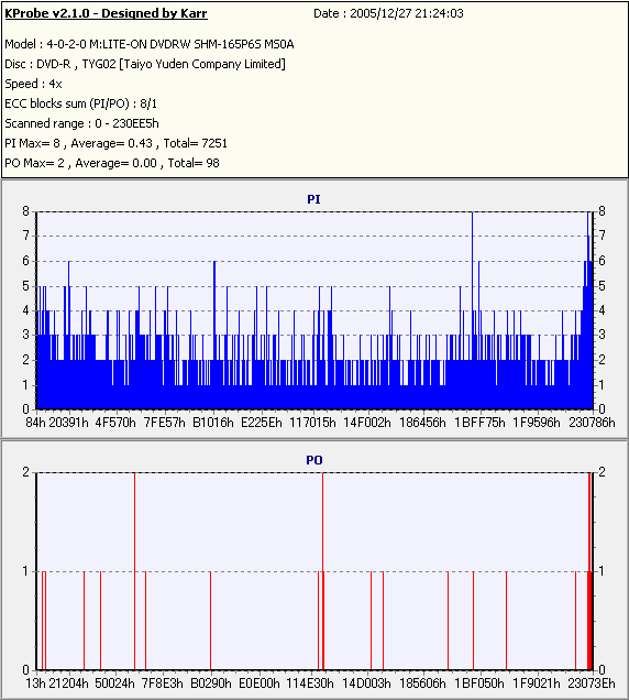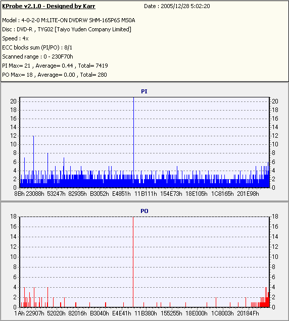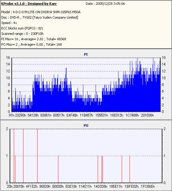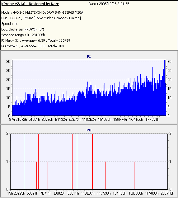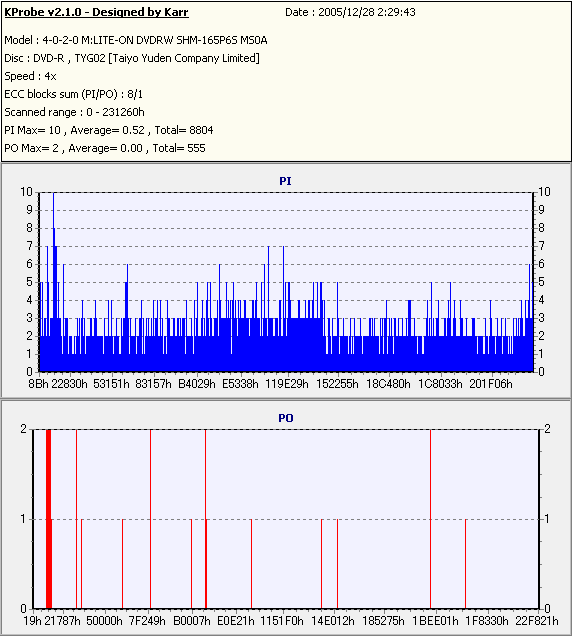 PlexTools Professional with PX-716A_PI/PO 8ECC,1ECC Sum -PX-716AでのPI/POテスト- |