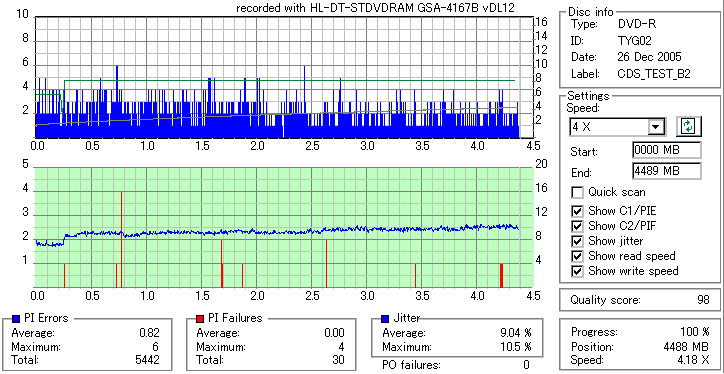 CDSpeed with BenQ DW1640_Disc Quality Test -DW1640でのディスク品質チェック- |