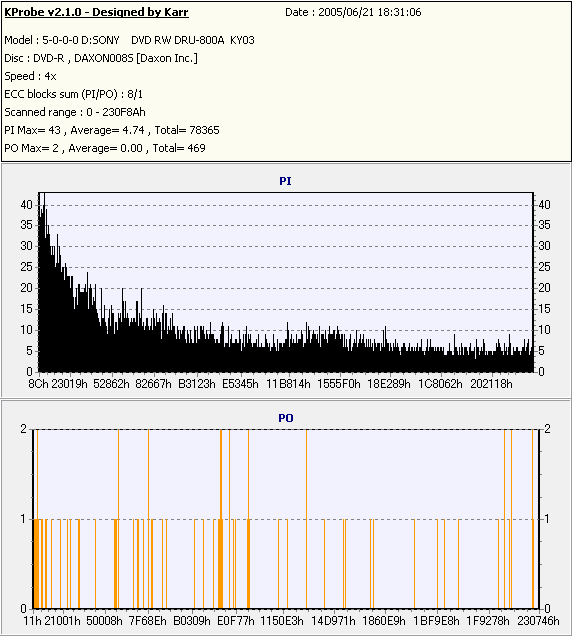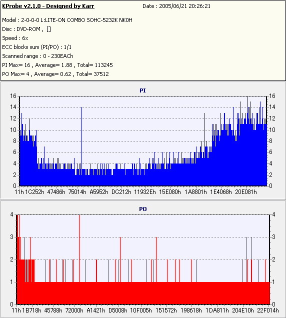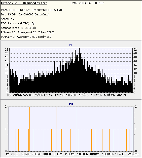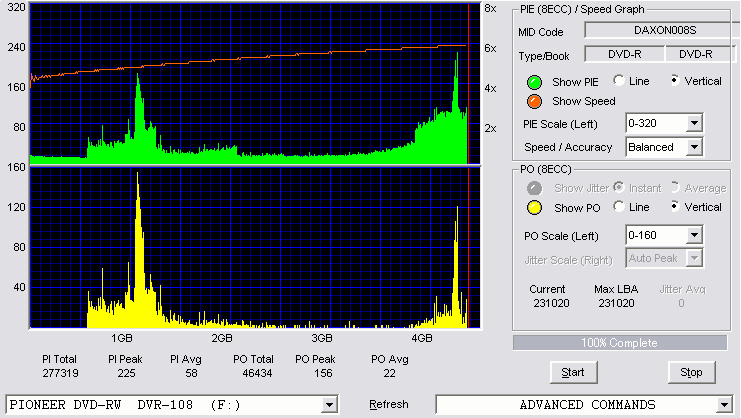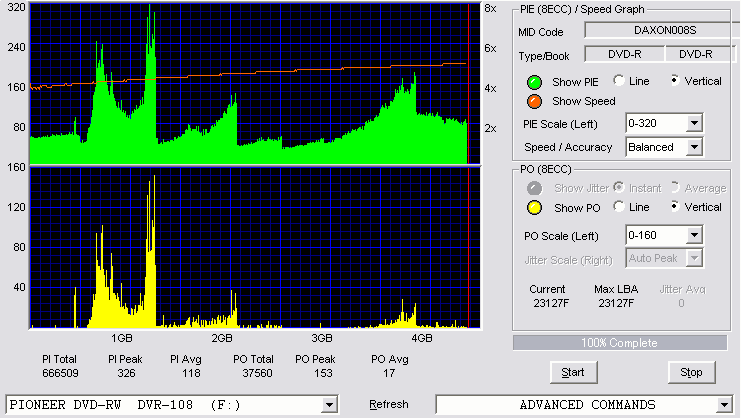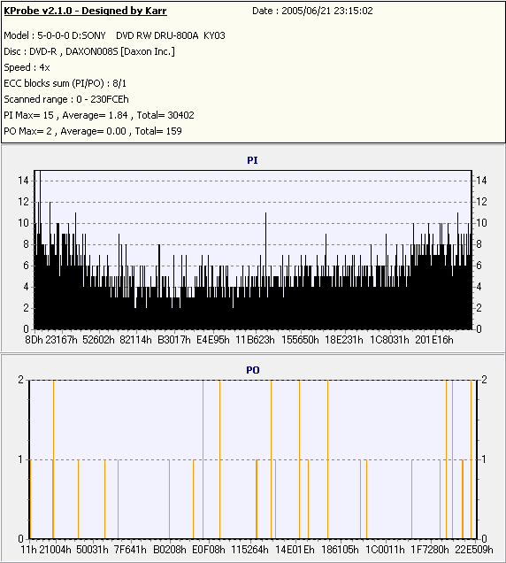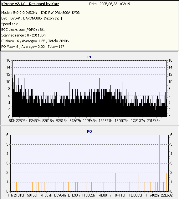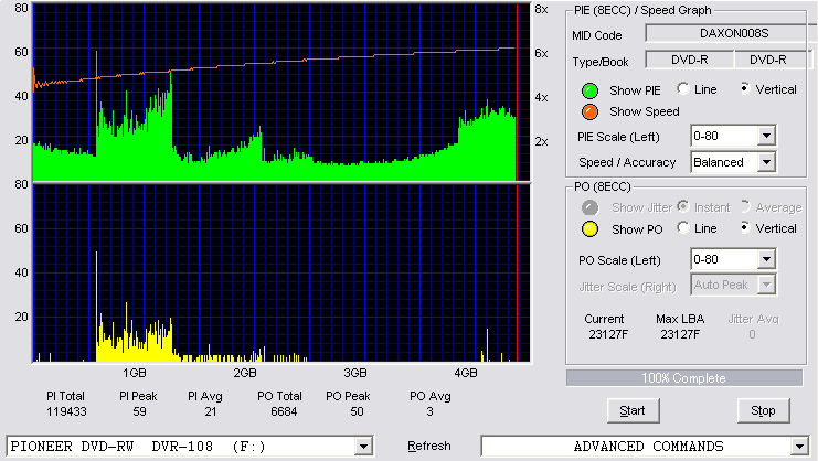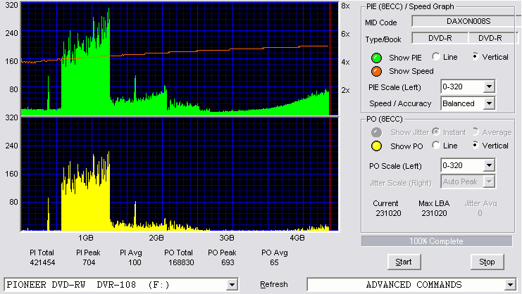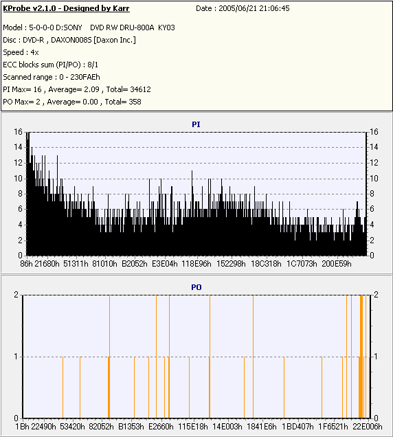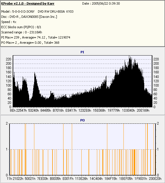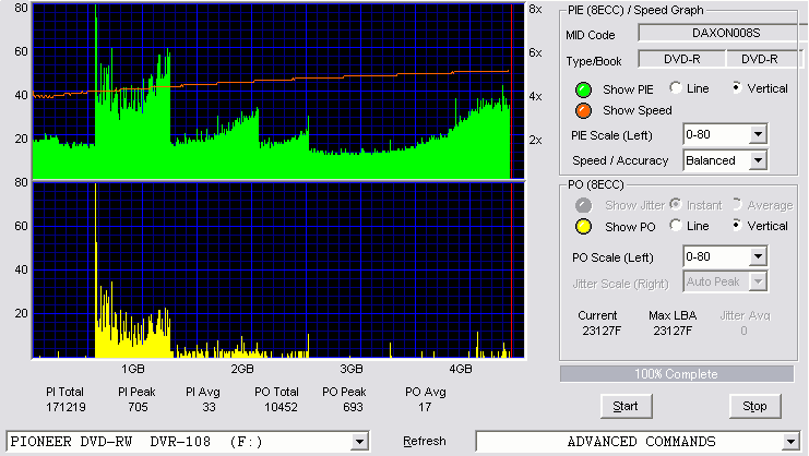 DVDInfoPro + Pioneer DVR-108のPI/PO Test(PIE/POE)