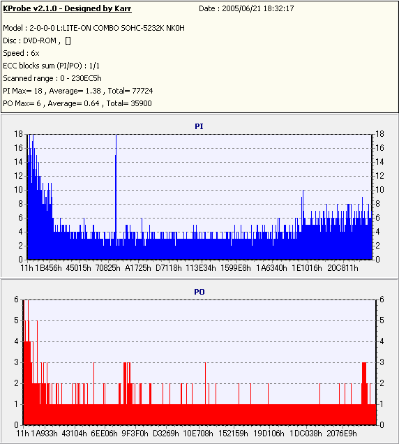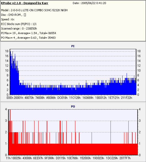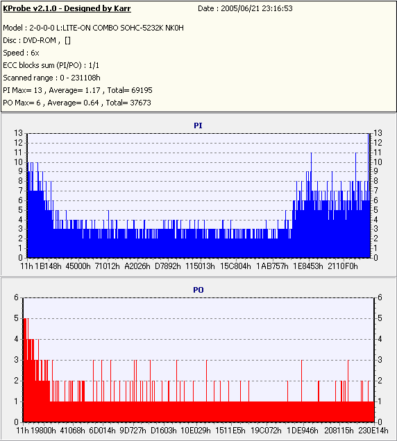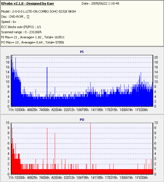 Kprobe + LITE-ON SOHC-5232Kでの1/1ECC Sum 6x CAV計測