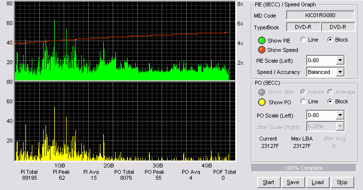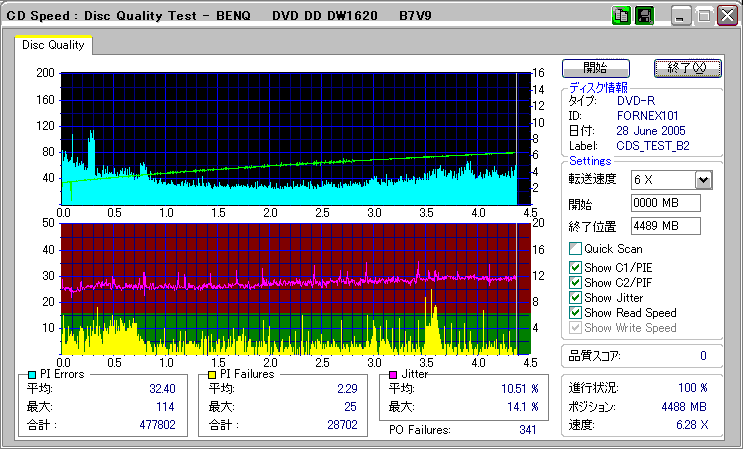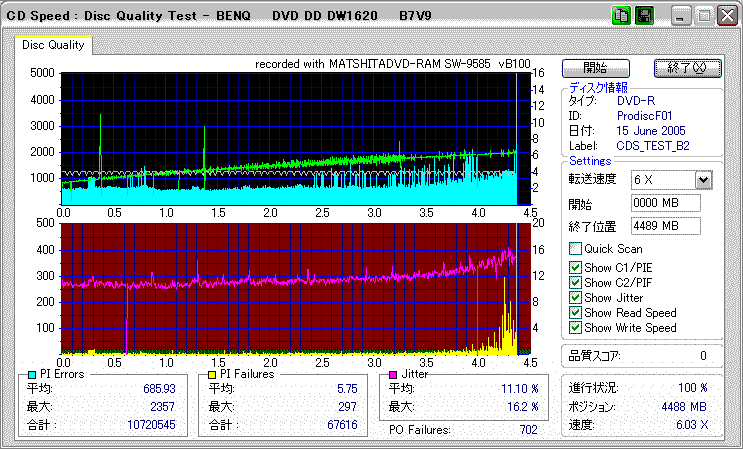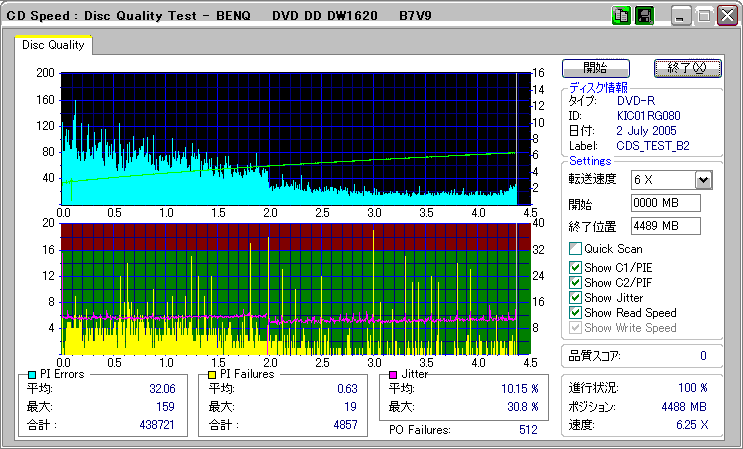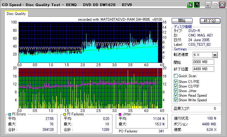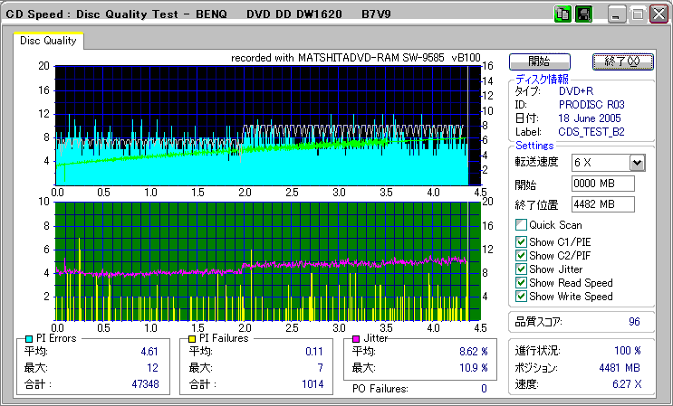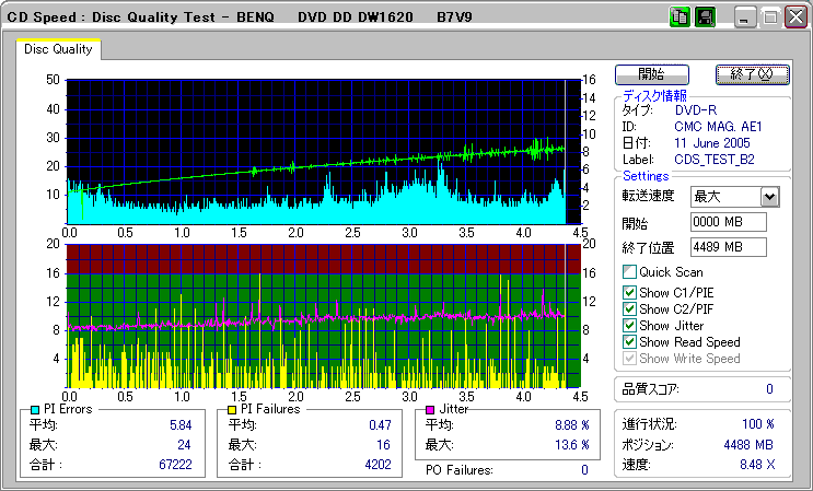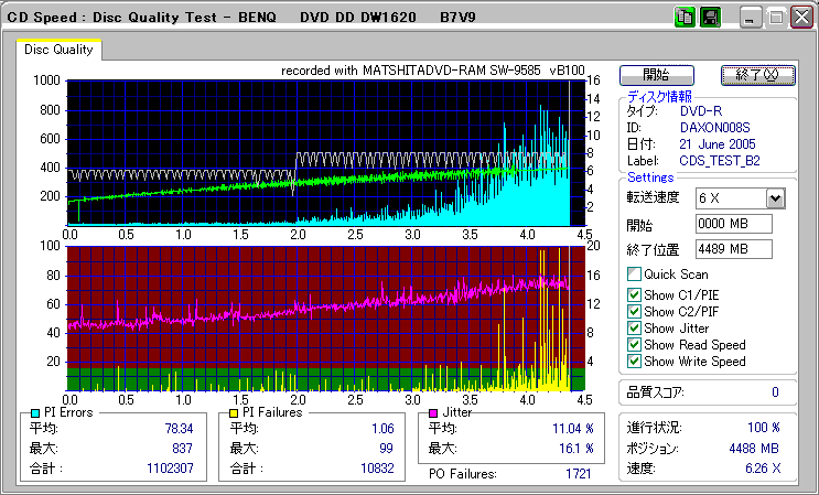 CDSpeed + BenQ DW1620Rの品質テスト(PIE/PIF/Jitter/POF)