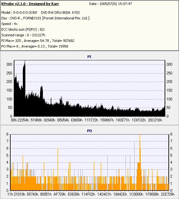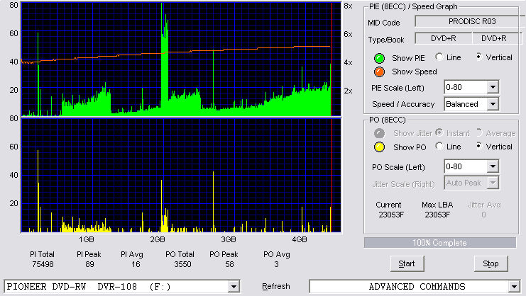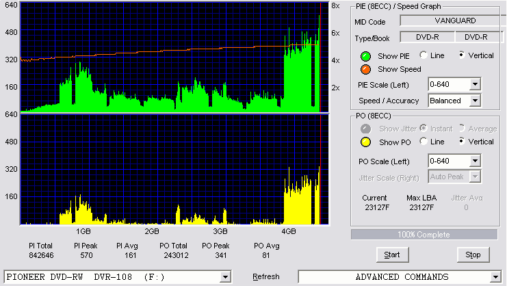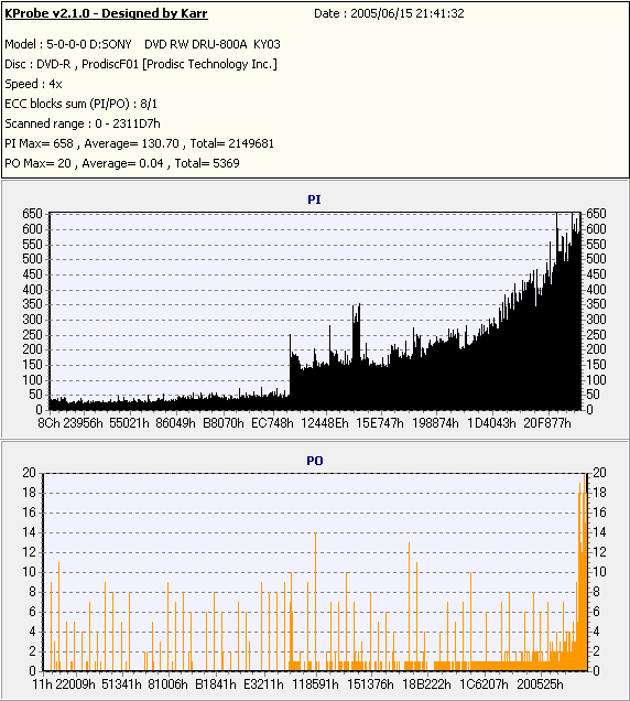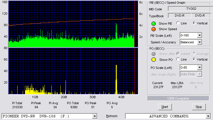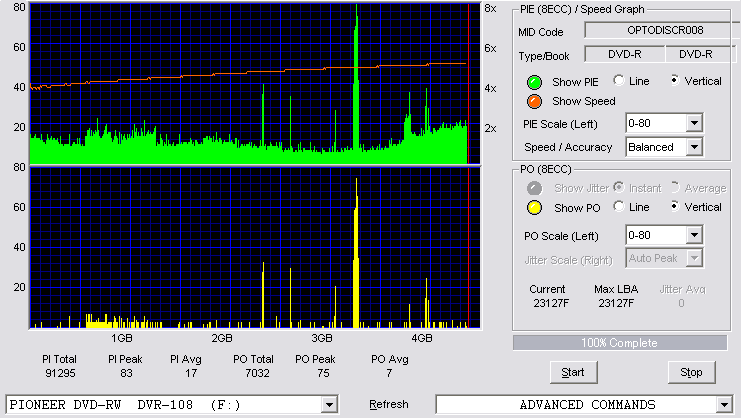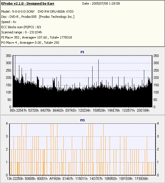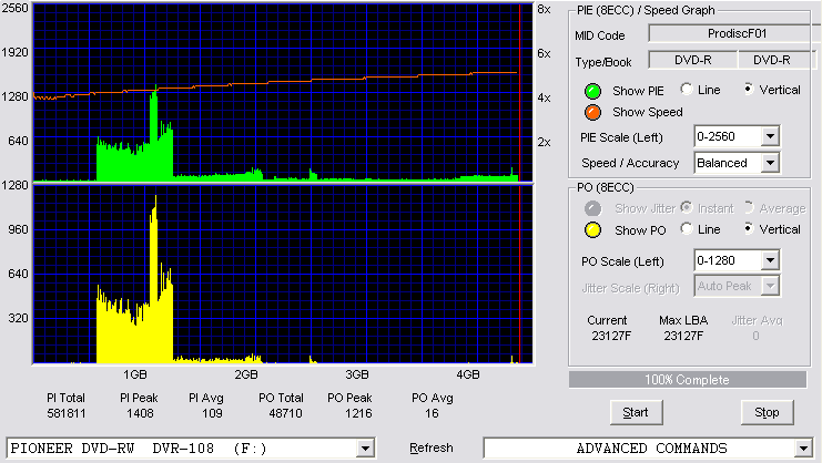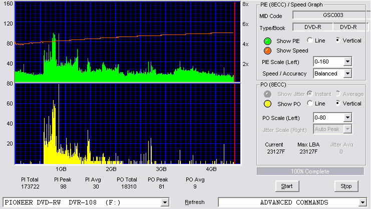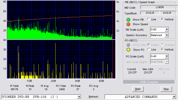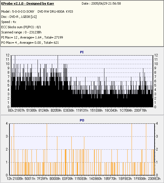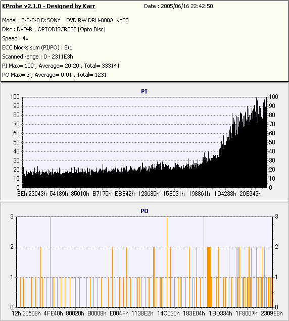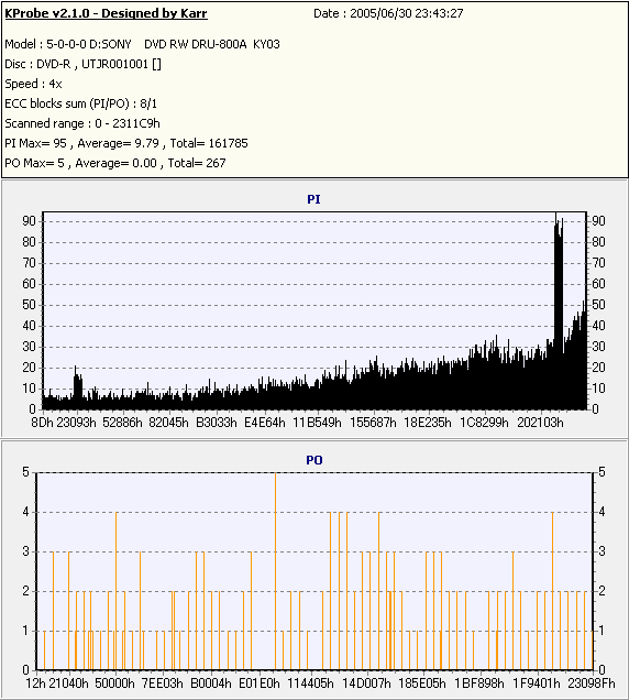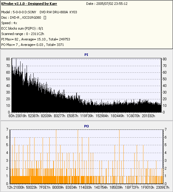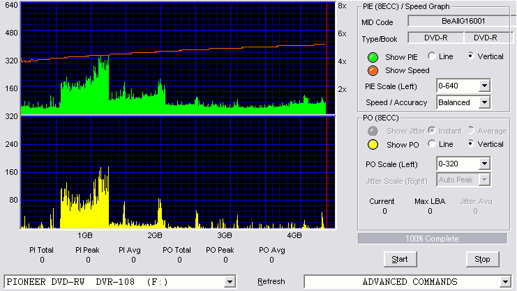 DVDInfoPro + Pioneer DVR-108のPI/PO Test(PIE/POE)