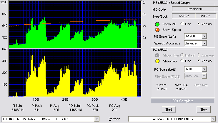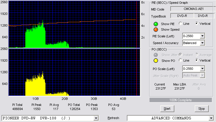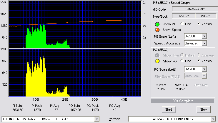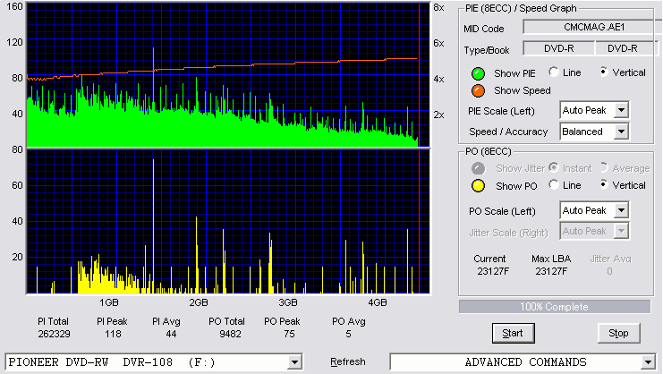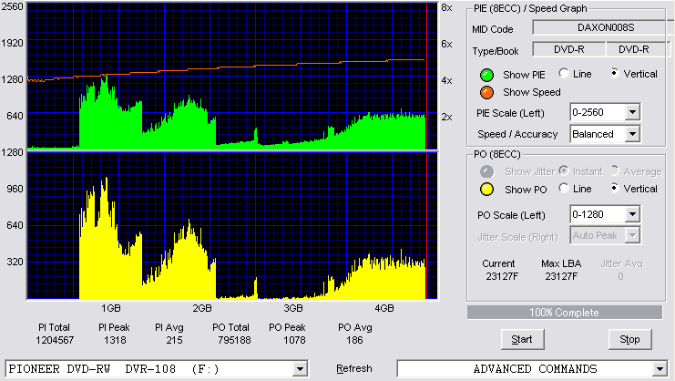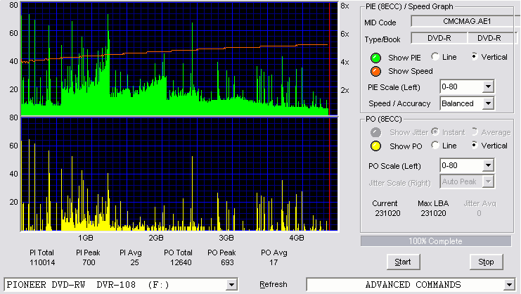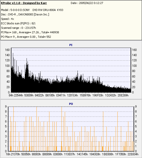 DVDInfoPro + Pioneer DVR-108のPI/PO Test(PIE/POE) |