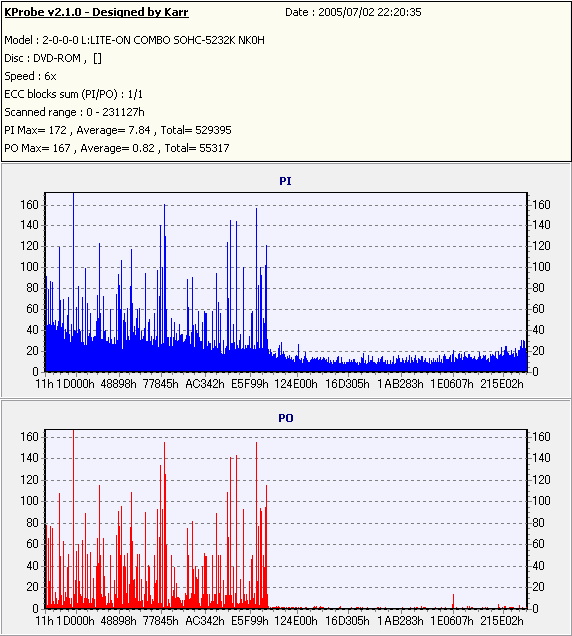 Kprobe + LITE-ON SOHC-5232Kでの1/1ECC Sum 6x CAV計測