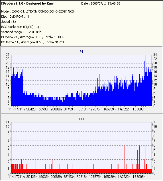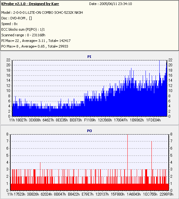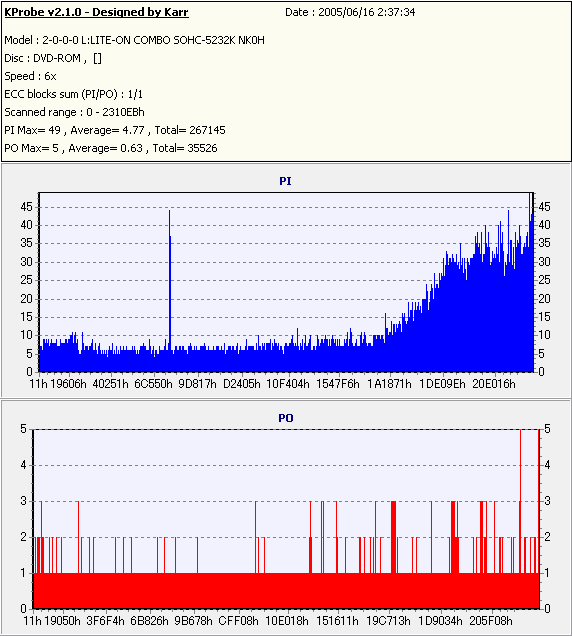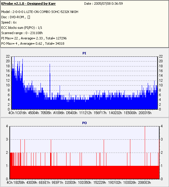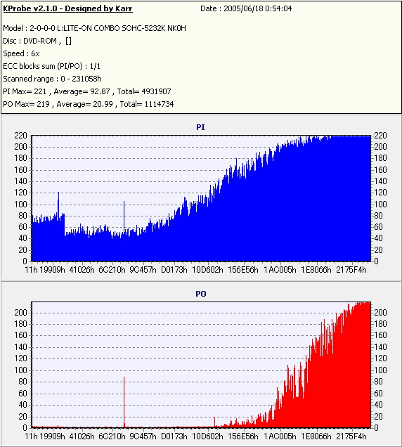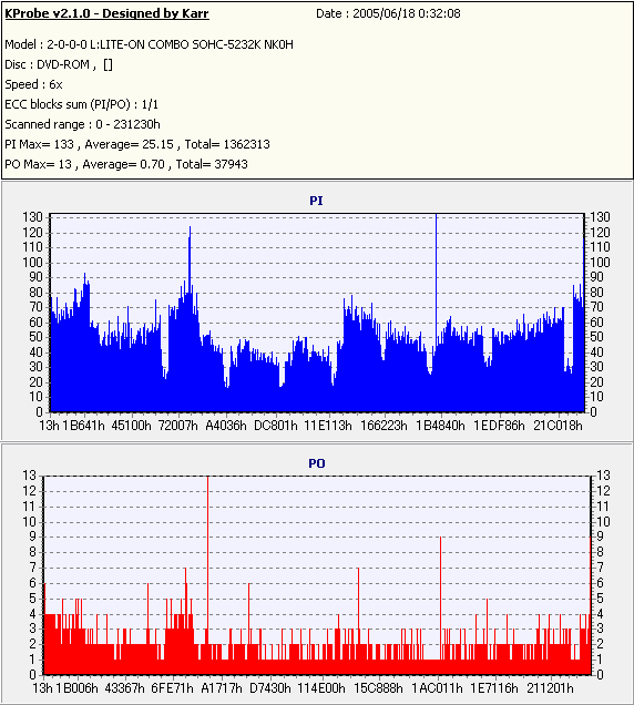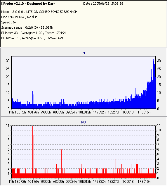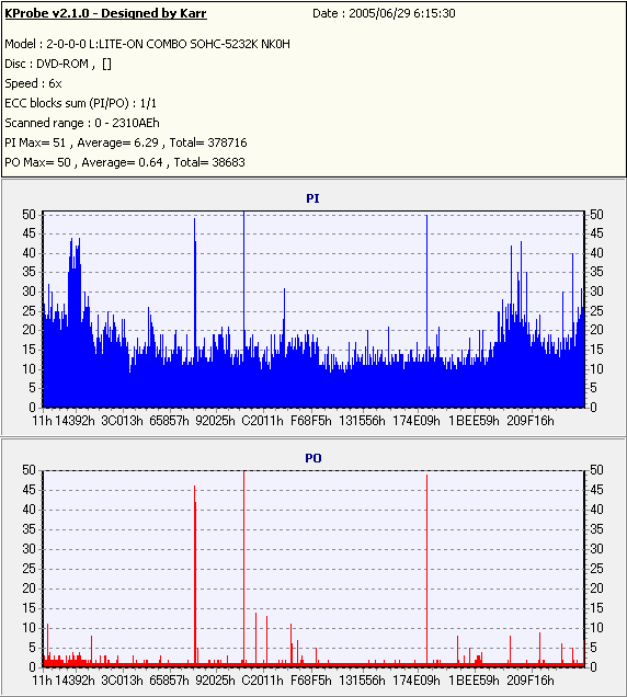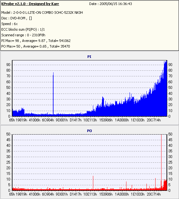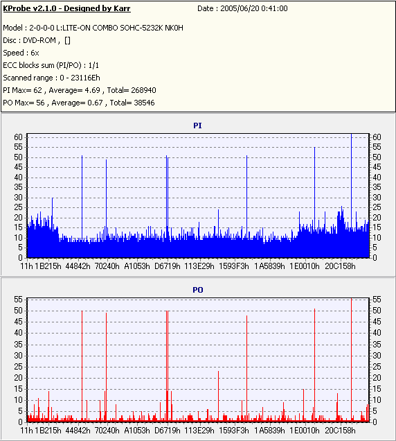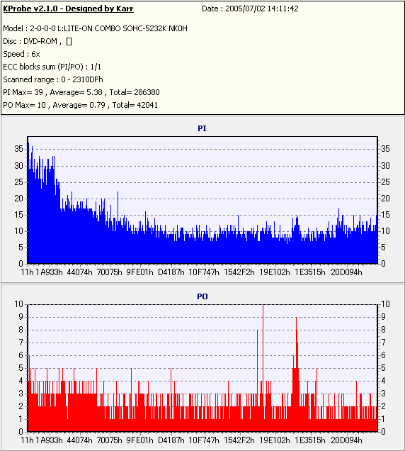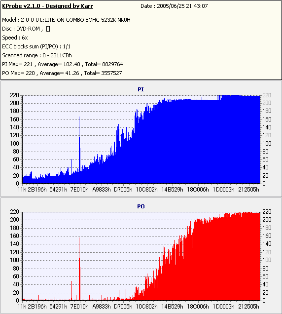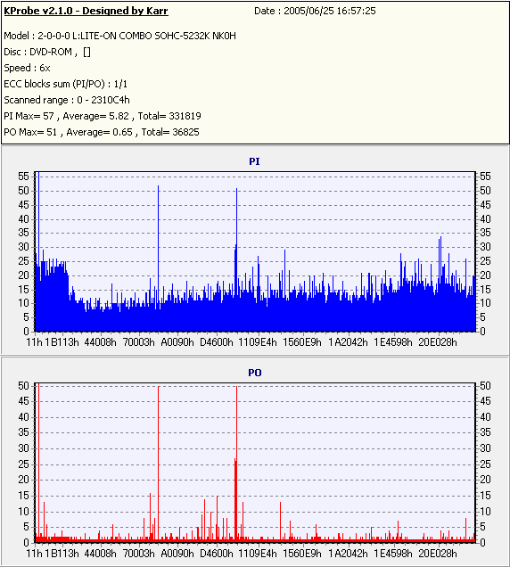 Kprobe + LITE-ON SOHC-5232Kでの1/1ECC Sum 6x CAV計測 |