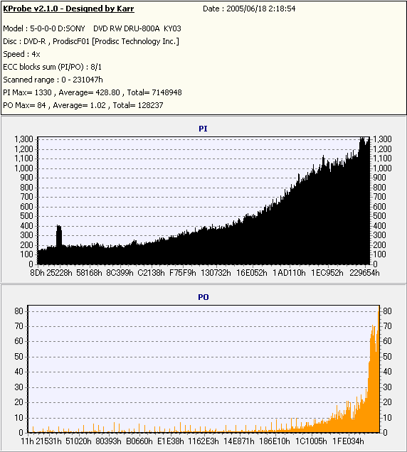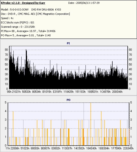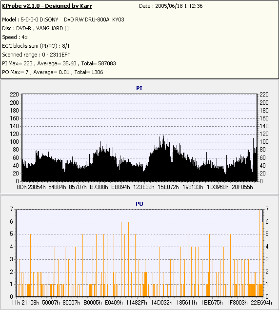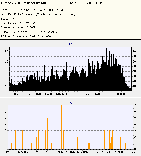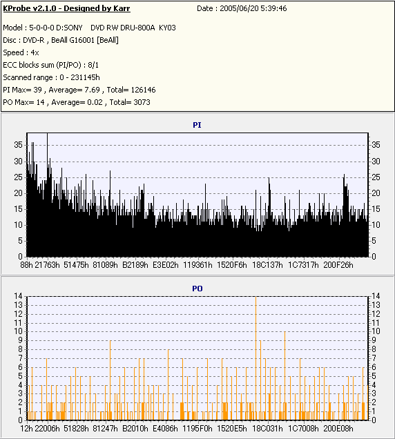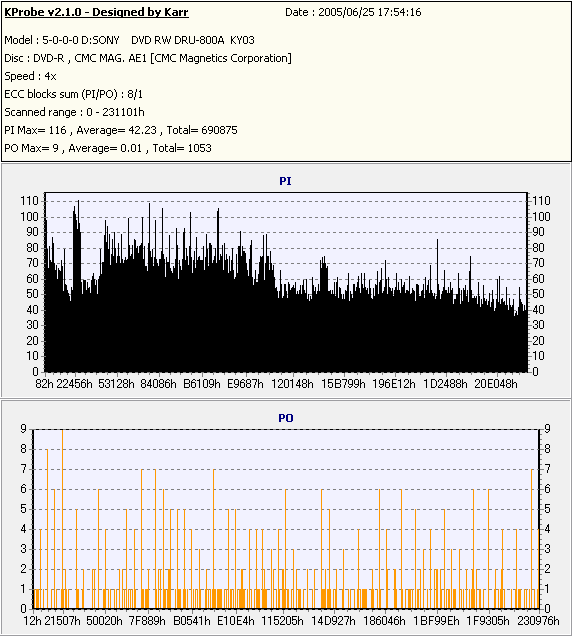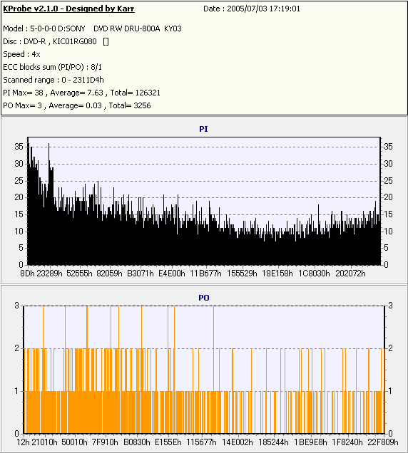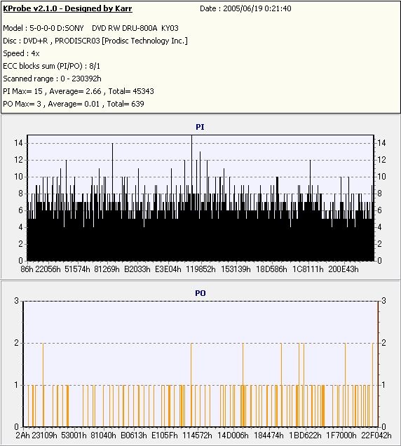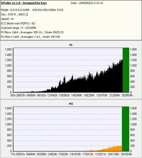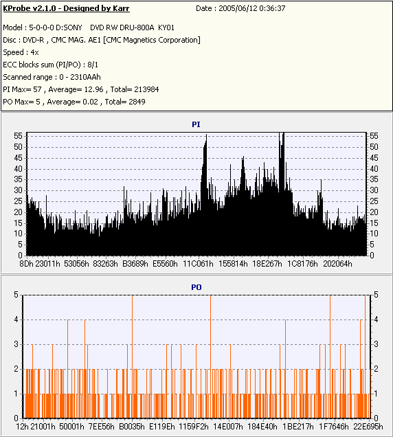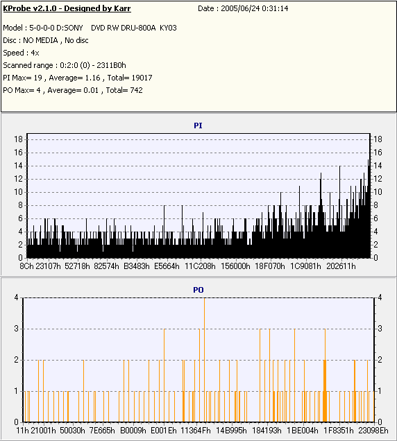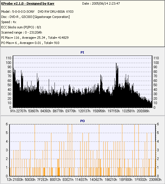 Kprobe + SONY DRU-800Aでの8/1ECC Sum 4x CLV計測 |