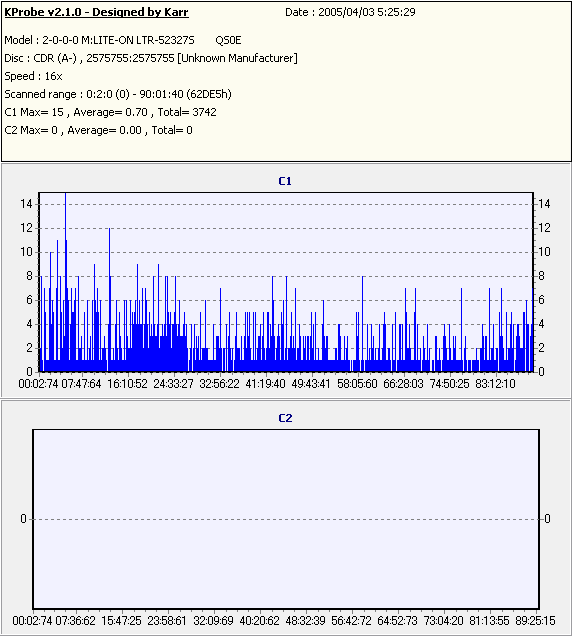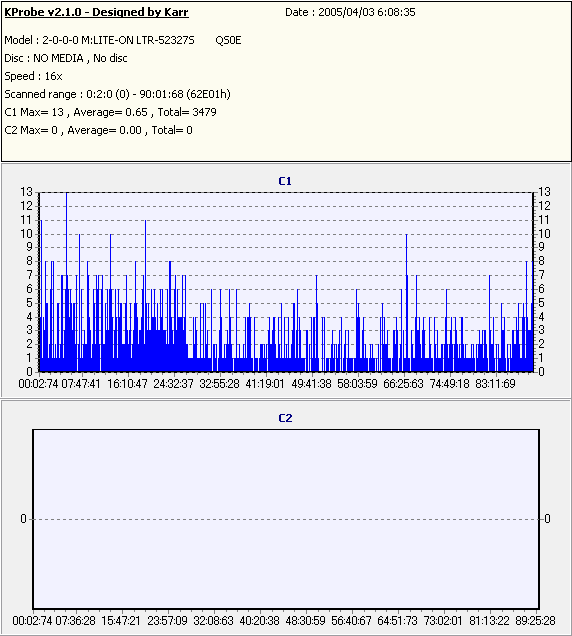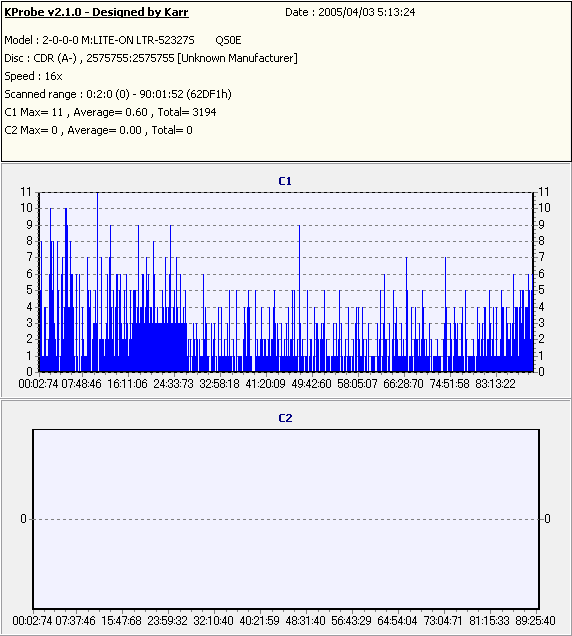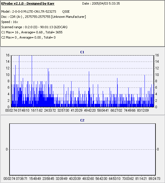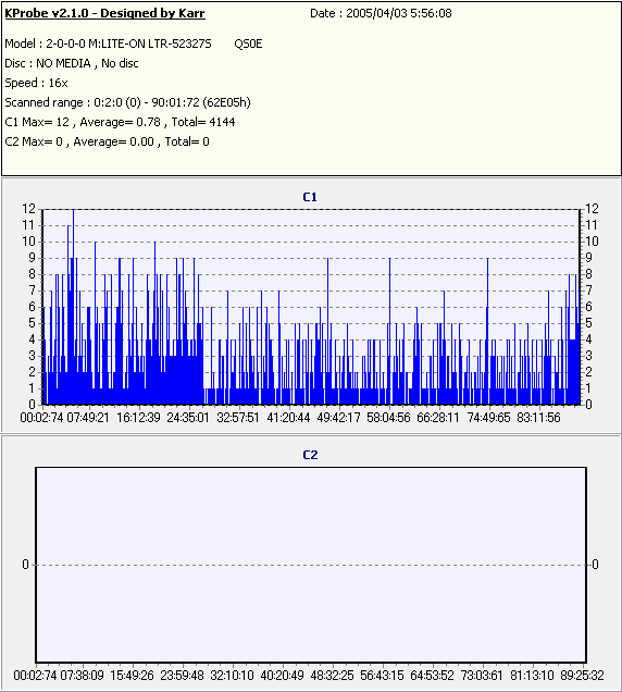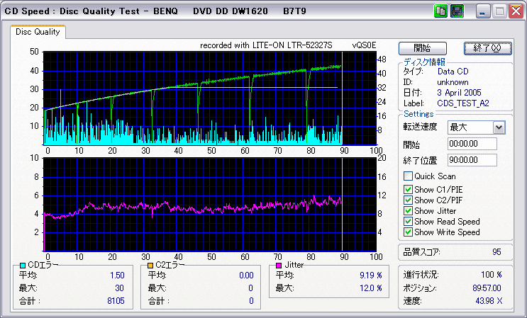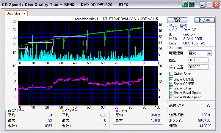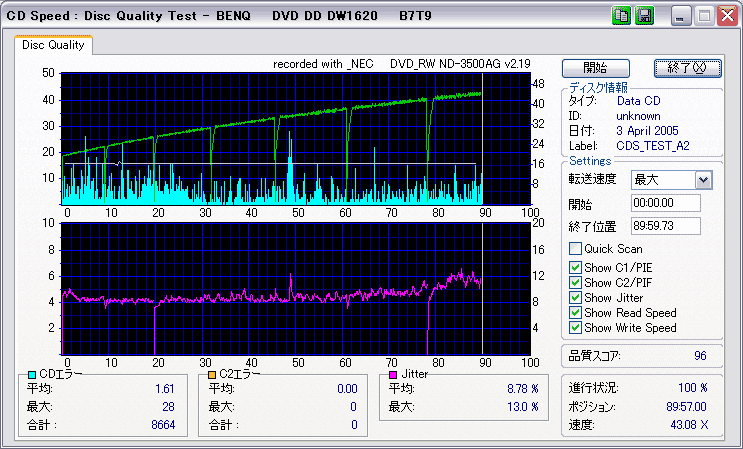 Jitterがかなり高め。C2エラーも発生しており、外周ではC1エラーもやや増加傾向。