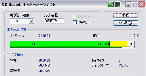 速度は表記の32xでストップ。やはりJitterが少々高めになってしまうが、やはり普通に使えそう。 |