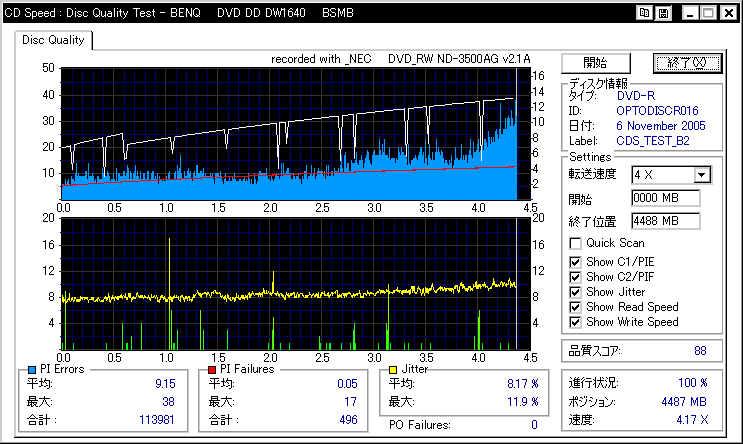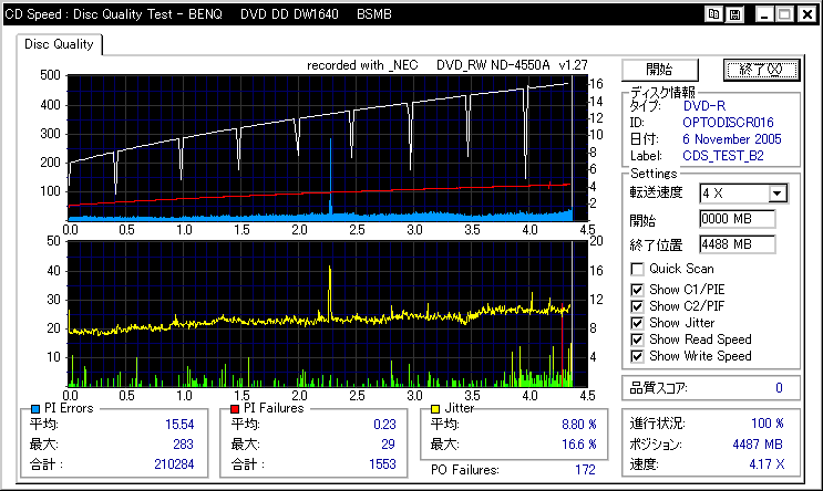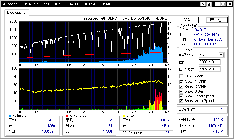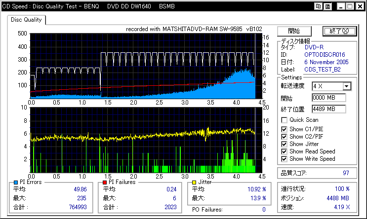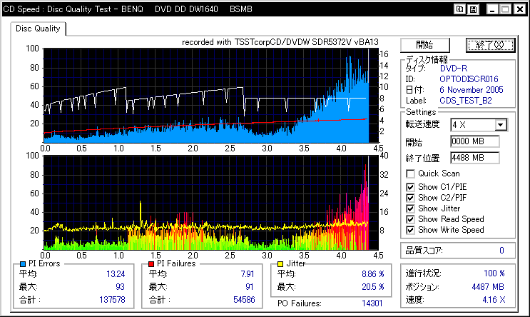 相性悪かったんでしょうか。高速焼きには定評のあるはずのBenQですが、外周が死んでます |