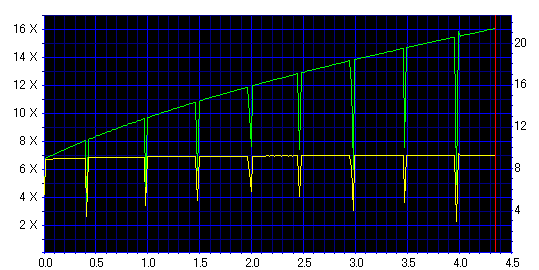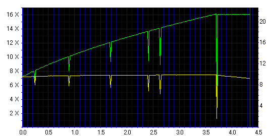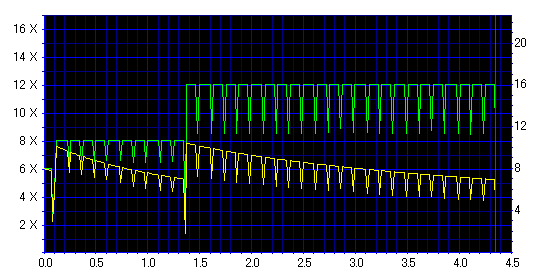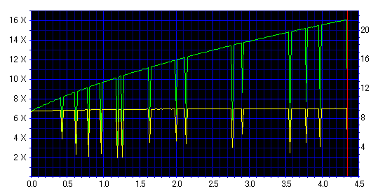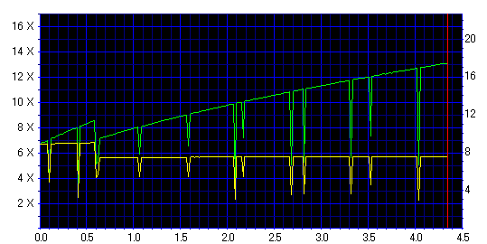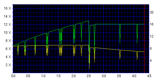 減速地点で変な山ができてますが、そこを除けばそんなに悪くない結果です。 どうせ減速させるなら、最初から12倍で焼いた方が良さそうです。 |