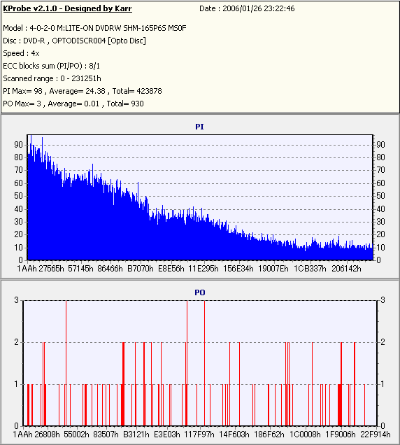 市場から姿を消して久しかったSW4倍が復活していたので、「OPTOは4倍生産停止してるんじゃなかったのか…」と思いつつ UME01あたりを期待して買ってみたところ、なんか普通にOPTO4倍でした。 品質はちょっと微妙。ドライブによって相性の大きい妙な結果になっています。OPTOってこんなだったっけか…… |