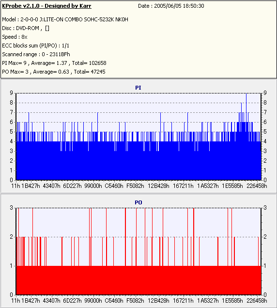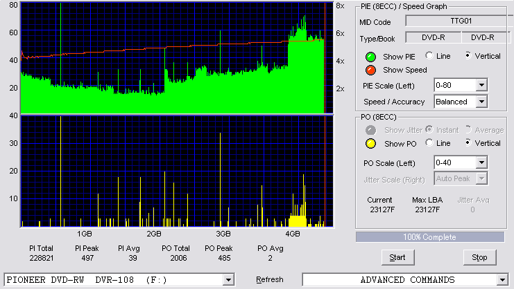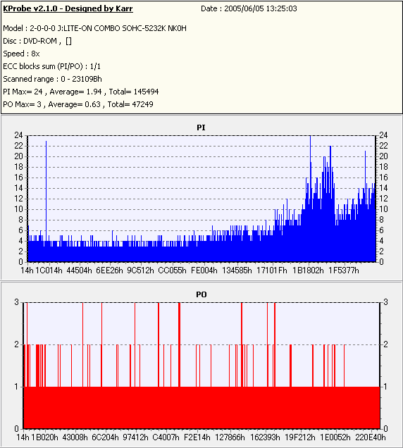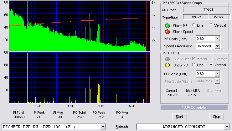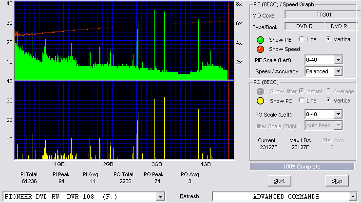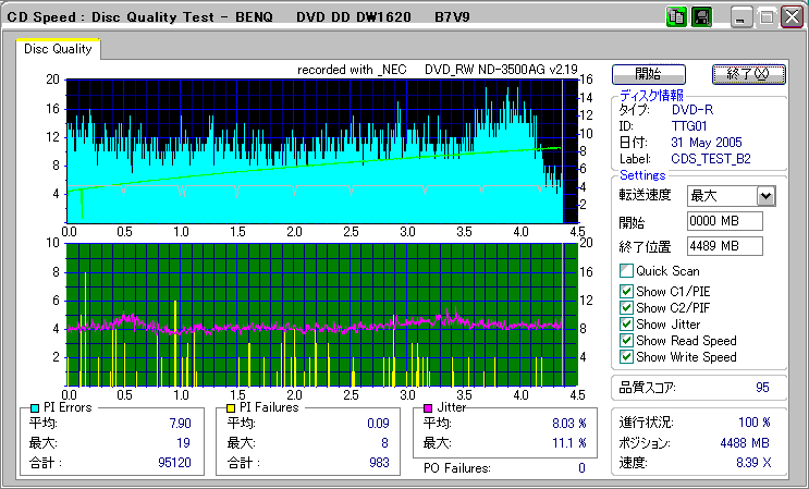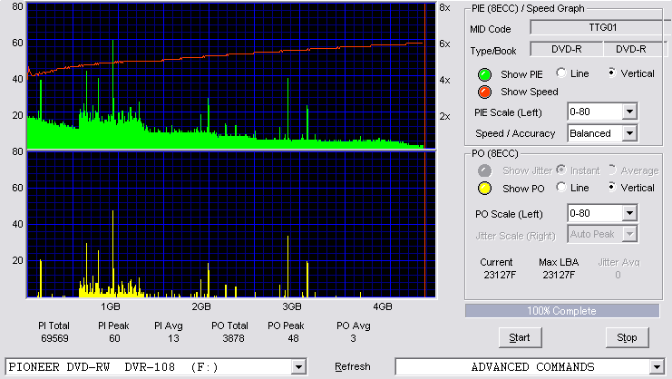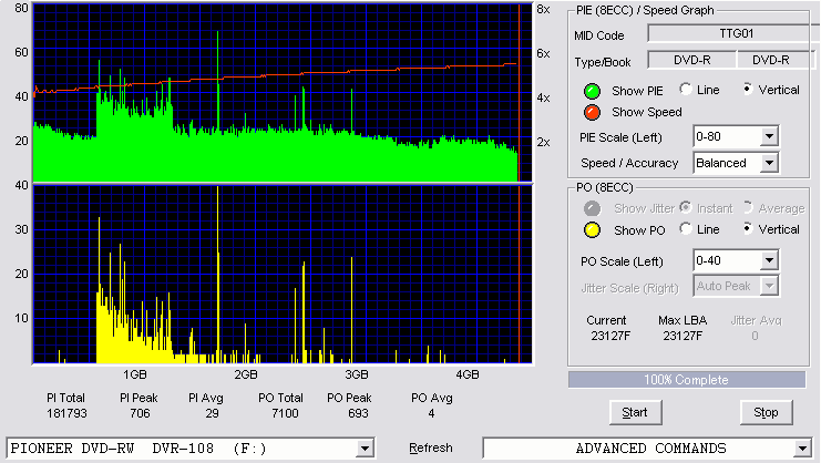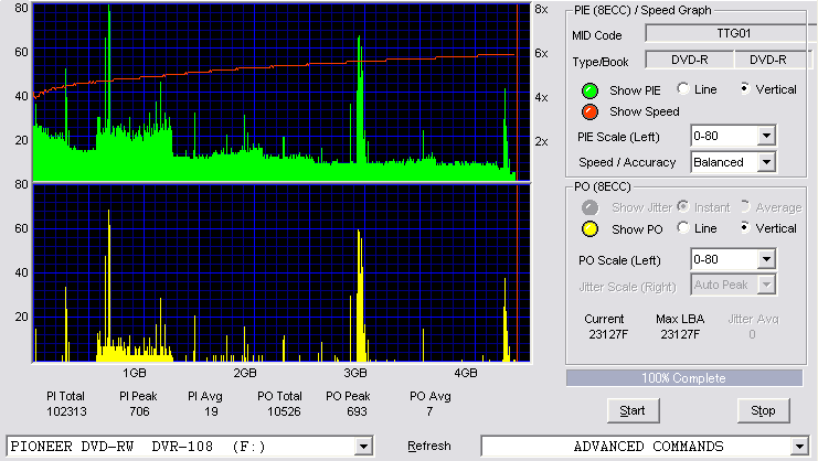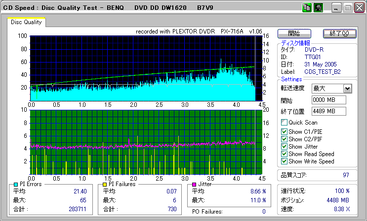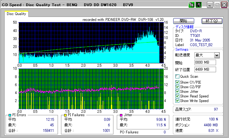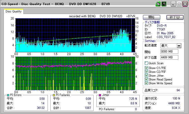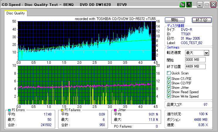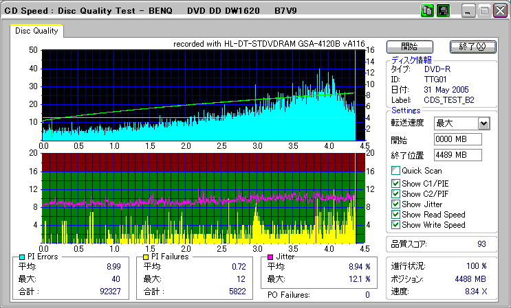焼いてみた結果、記録面に妙に焼きムラが見られ、視覚的にやや不安なのだが、計測してみると非常に良好な結果。