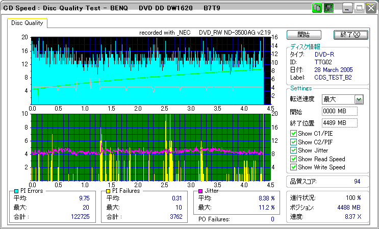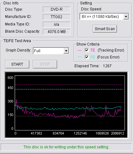 TDKの8倍メディアはややドライブ側のファーム対応も良くないようだ。