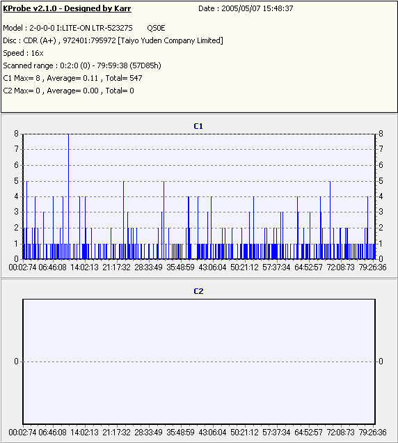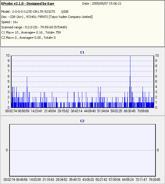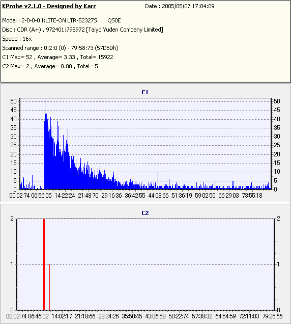 エラー・Jitter共に良好。52倍焼きでも問題なし。 |