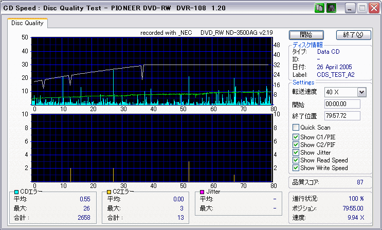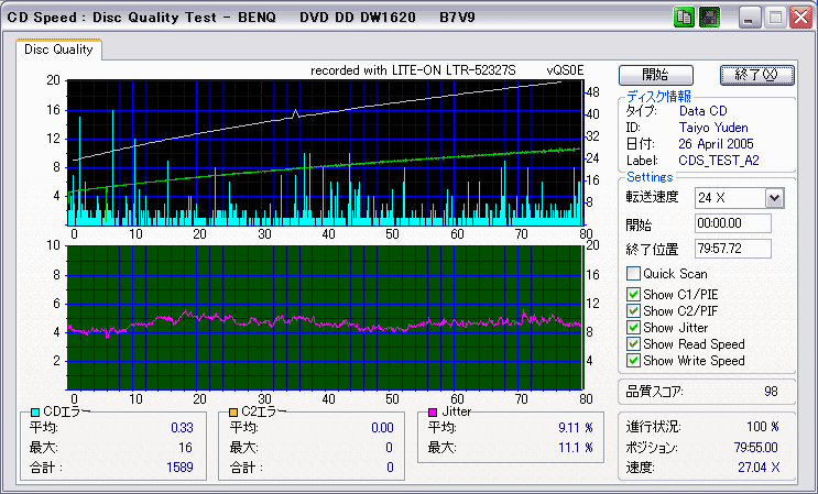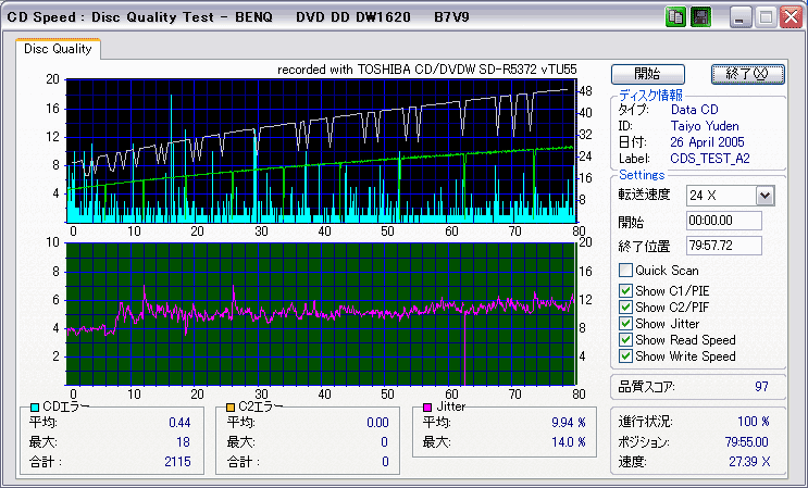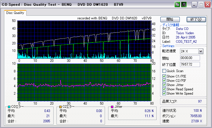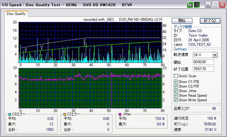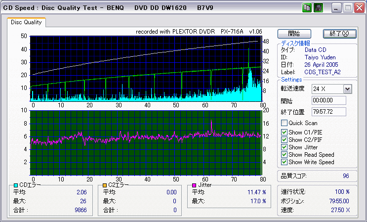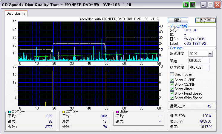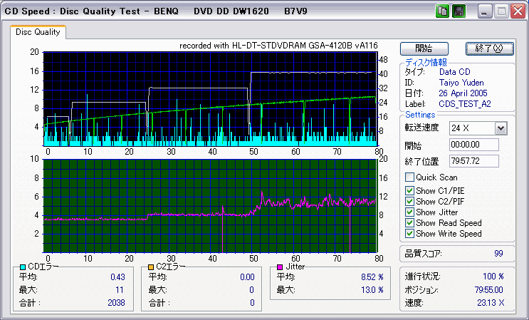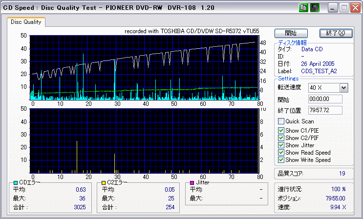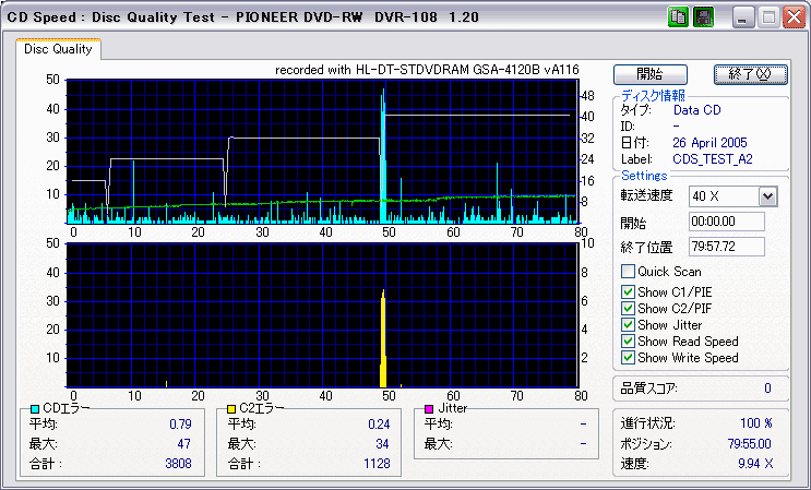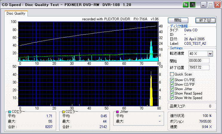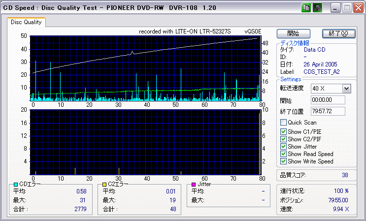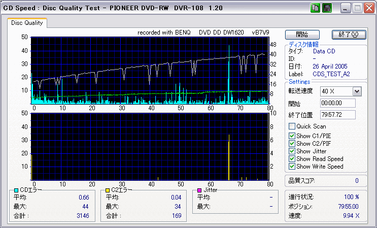 エラー・Jitter共に非常に優秀。ただ、何故か32倍で速度が止まってしまった。 |