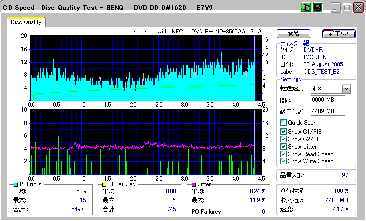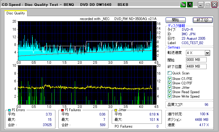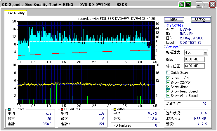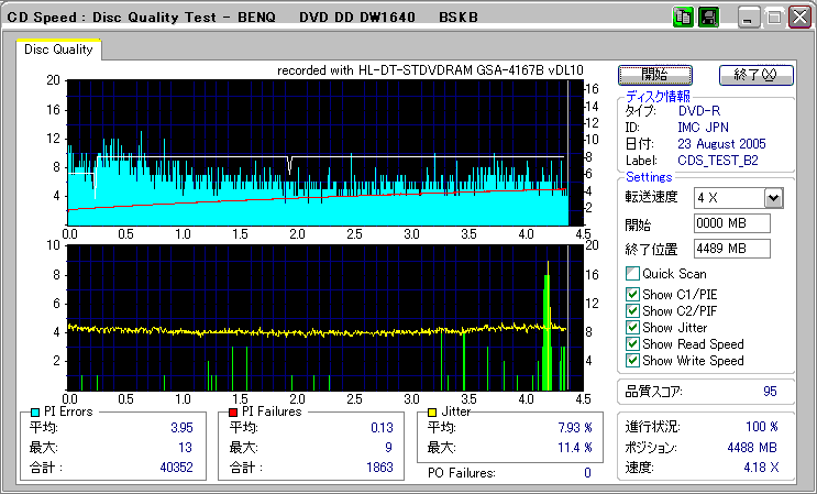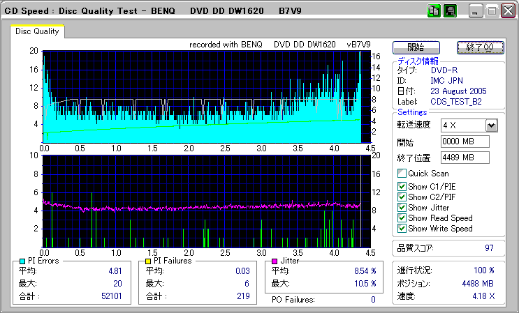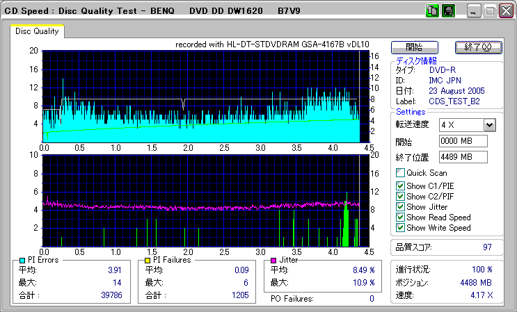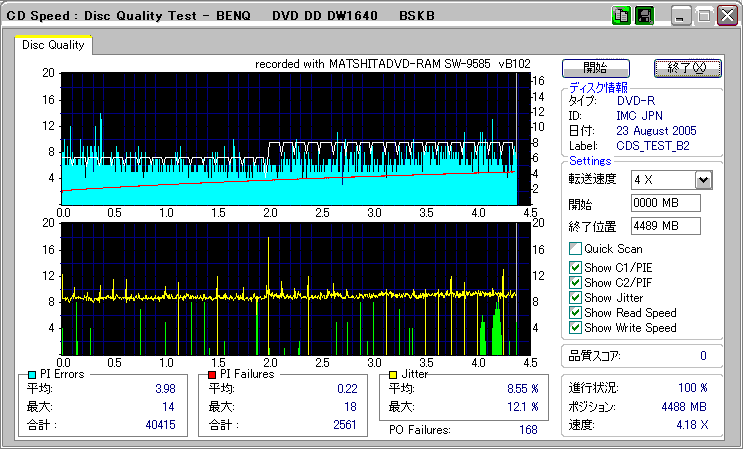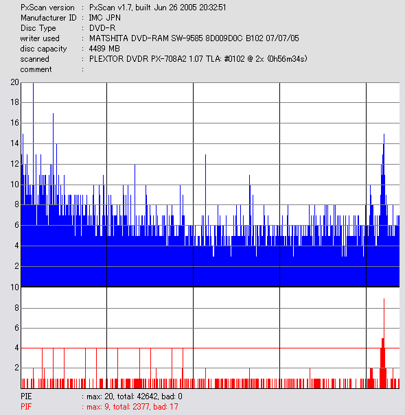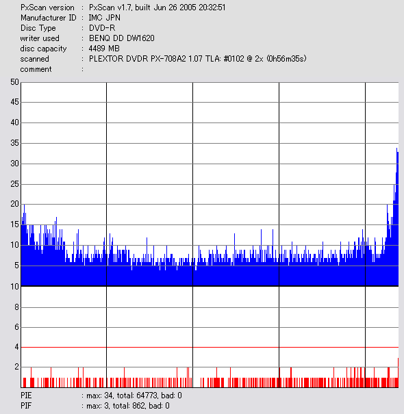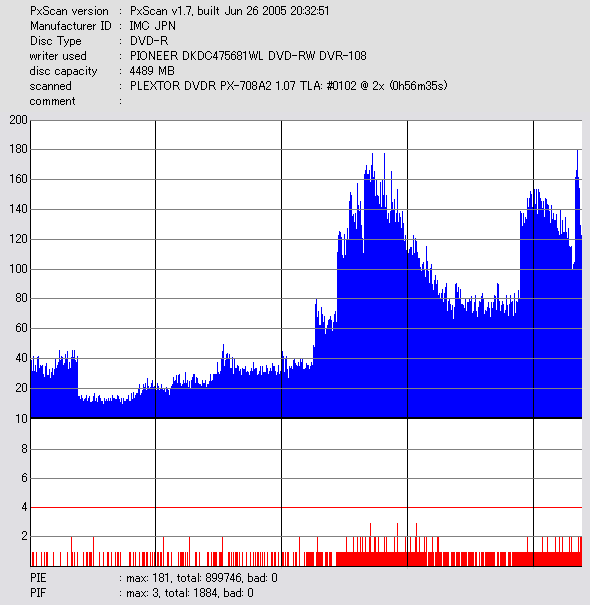 ちょっと外周でスパイクが発生してますが、メディアの特性だとかドライブの焼き特性だったりはしなさそうですしあんまり気にする必要はないでしょう。