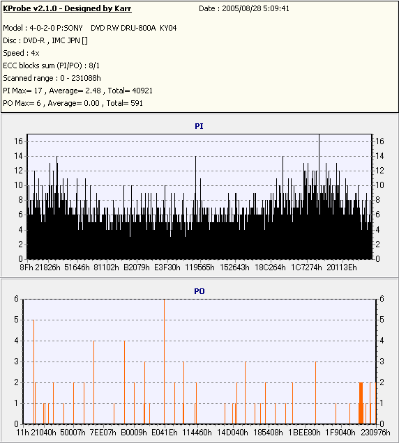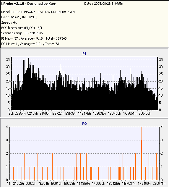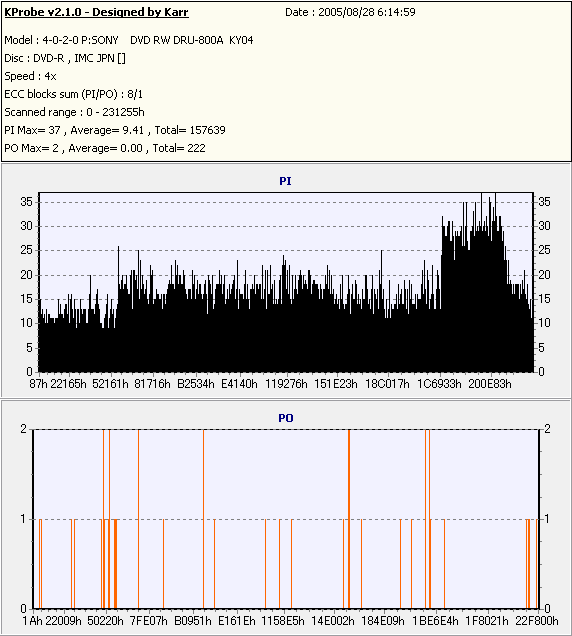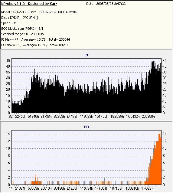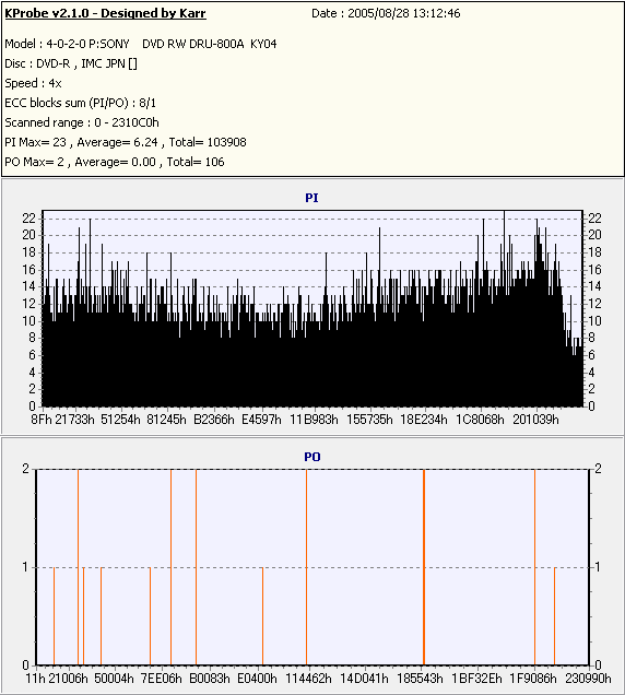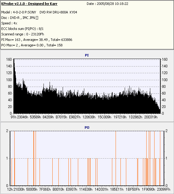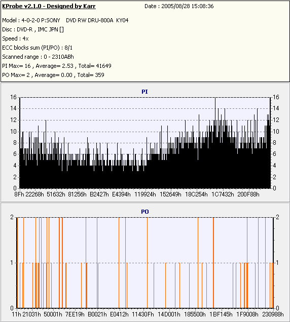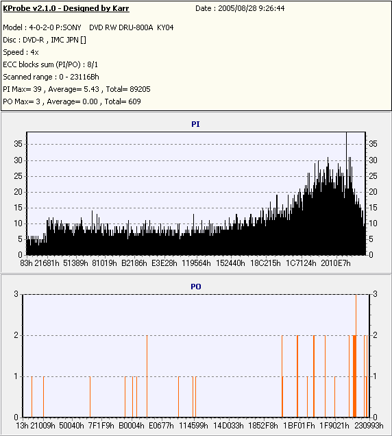 SONY DRU-800A_... Kprobe BLER PIE/PIF (8/1ECC Sum) 4xCLV Scan |